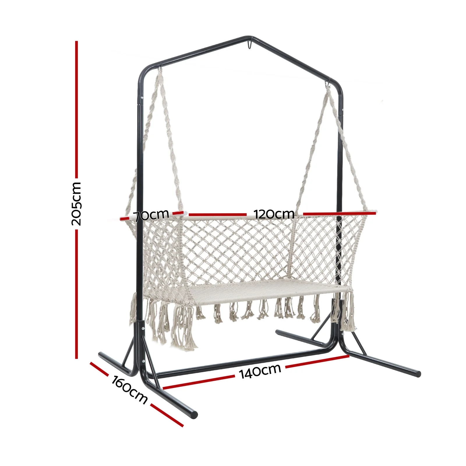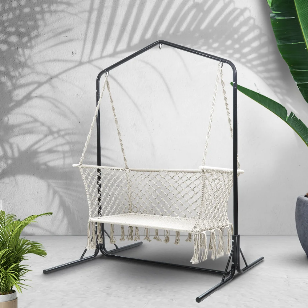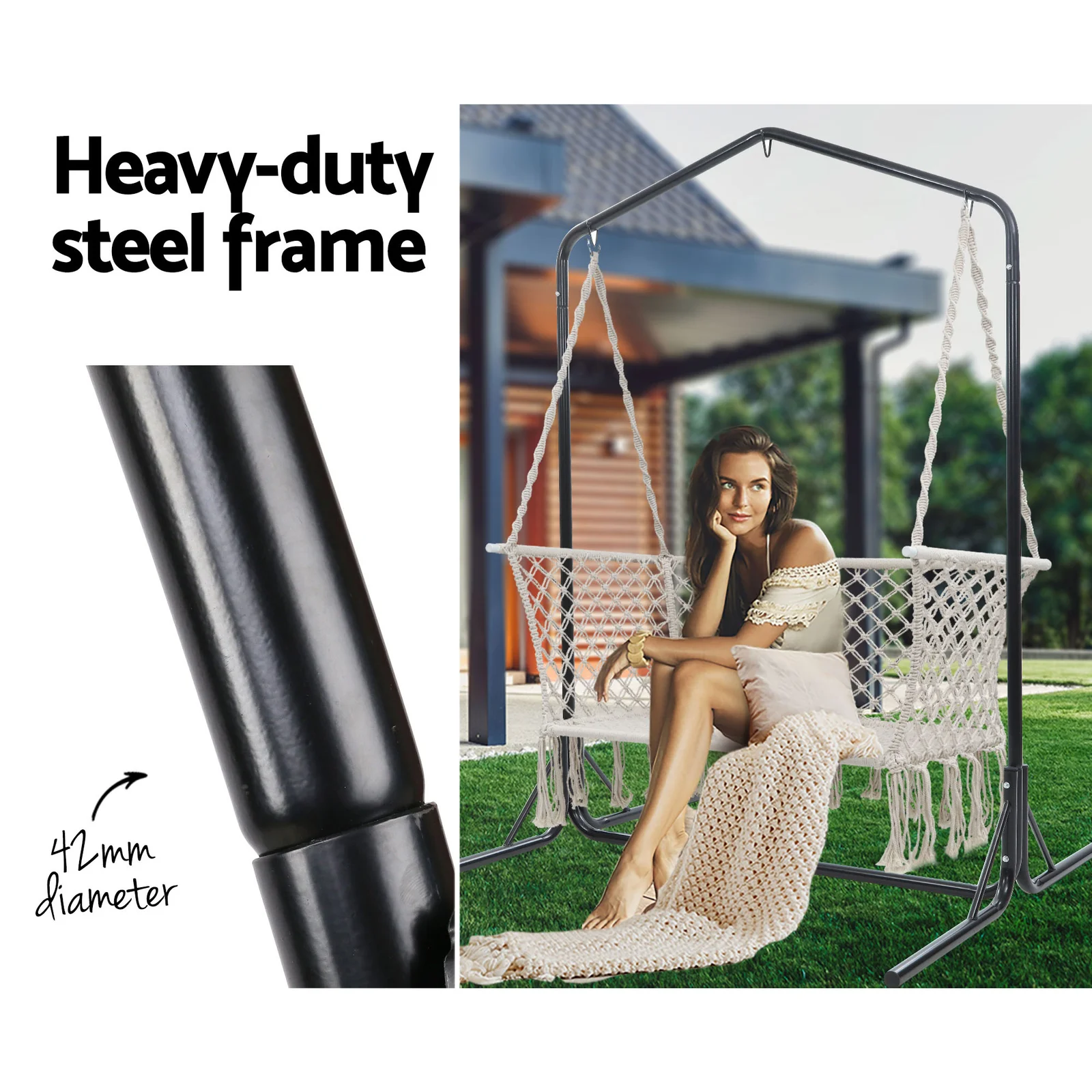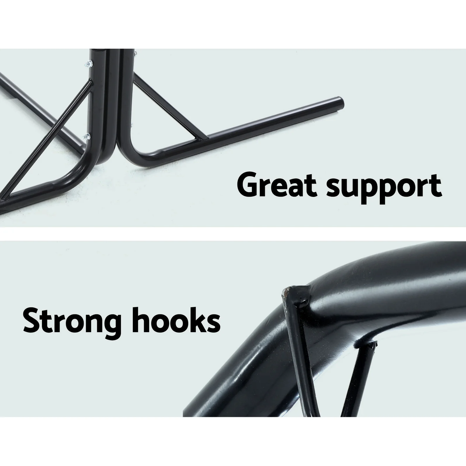 Need a heavy-duty stand for your hammock chair? Look no further than the Gardeon Full-frame Hammock Chair Stand. One of our popular models, the full-frame stand remains a firm favourite with customers who love to have their hammock chairs indoors or outdoors. Crafted from powder-coated steel, the 1.6m frame is designed to be weather-resistant and rust-resistant and strong enough to withstand robust use of up to 200kg weight capacity. Simply hook up your single or 2-seater hammock chair to the reinforced S-hook, adjust the desired height and you are ready for a relaxing time in the chair in the backyard, at the balcony, by the pool side or simply in your living room. Not least, the wide base ensures that the entire ensemble is safe and sturdy for many years of wonderful relaxation and leisure with your hammock chair.