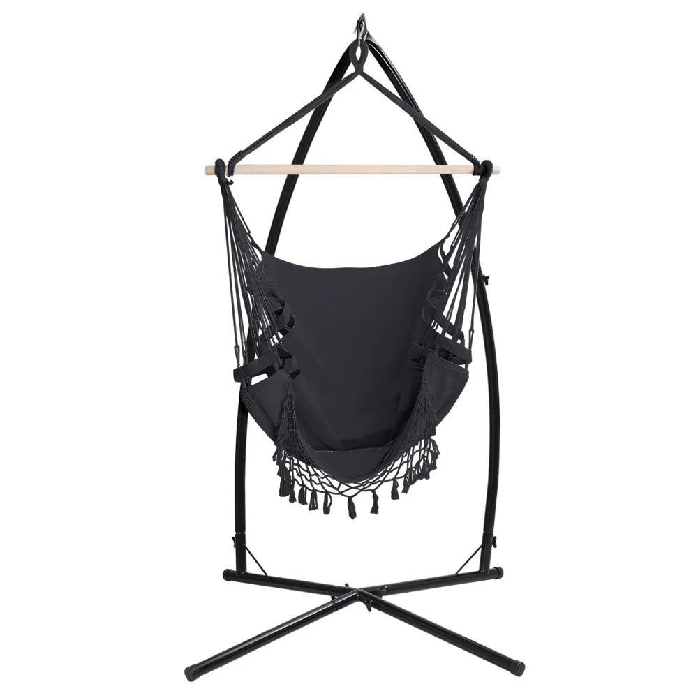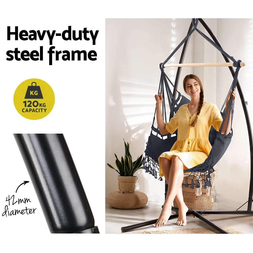 Gardeon Hammock Chair with Steel Stand Macrame Outdoor Swinging Cream