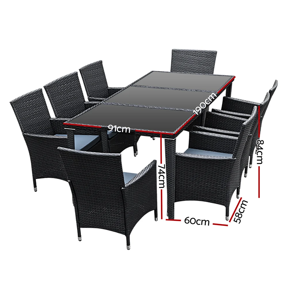 Gardeon 9 Piece Outdoor Dining Set - Black