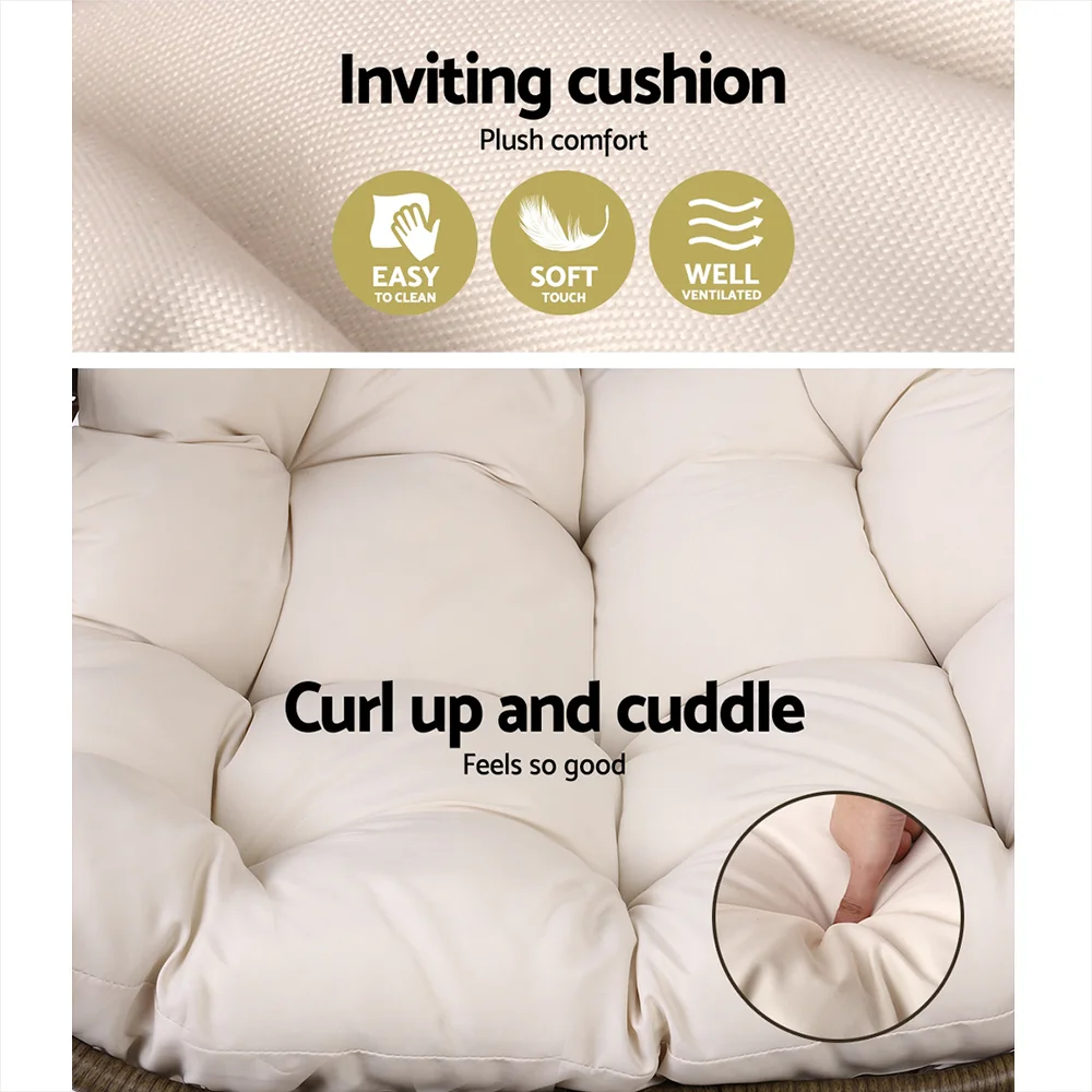 Otherwise known as the hanging egg chair, our hanging pod chair is the epitome of ultimate relaxation with a cool and exotic vibe. With its 100% hand-woven UV-resistant wicker, the pod is beautifully handcrafted and well hung with a powder-coated steel pole for stability and strength. The powder-coated steel frame finish ensures that corrosion will never be an issue while the soft, inviting cushion offers plush comfort for day dreamers and leisure seekers alike. Best of all, it has ample space for relaxation with a weight capacity of up to 150kg. Hang cool people!
