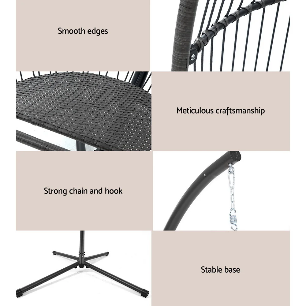 Otherwise known as the hanging egg chair, the Gardeon Hanging Pod Chair is the epitome of ultimate relaxation. Featuring 100% hand-woven UV-resistant wicker, the pod is beautifully handcrafted to give it a cool, exotic appeal that will suit any balcony, poolside, or indoor living space. It has ample space for relaxation with a weight capacity of up to 150kg. You can really take in the views as it rotates 360�, or you can tie the chair to the pole with the included rope if you prefer more stability. The powder-coated steel frame ensures corrosion is never an issue. Best of all, the soft, inviting cushion offers plush comfort for day dreamers and leisure seekers alike. Hang cool people! Get your Gardeon Hanging Pod Chair just in time for summer!