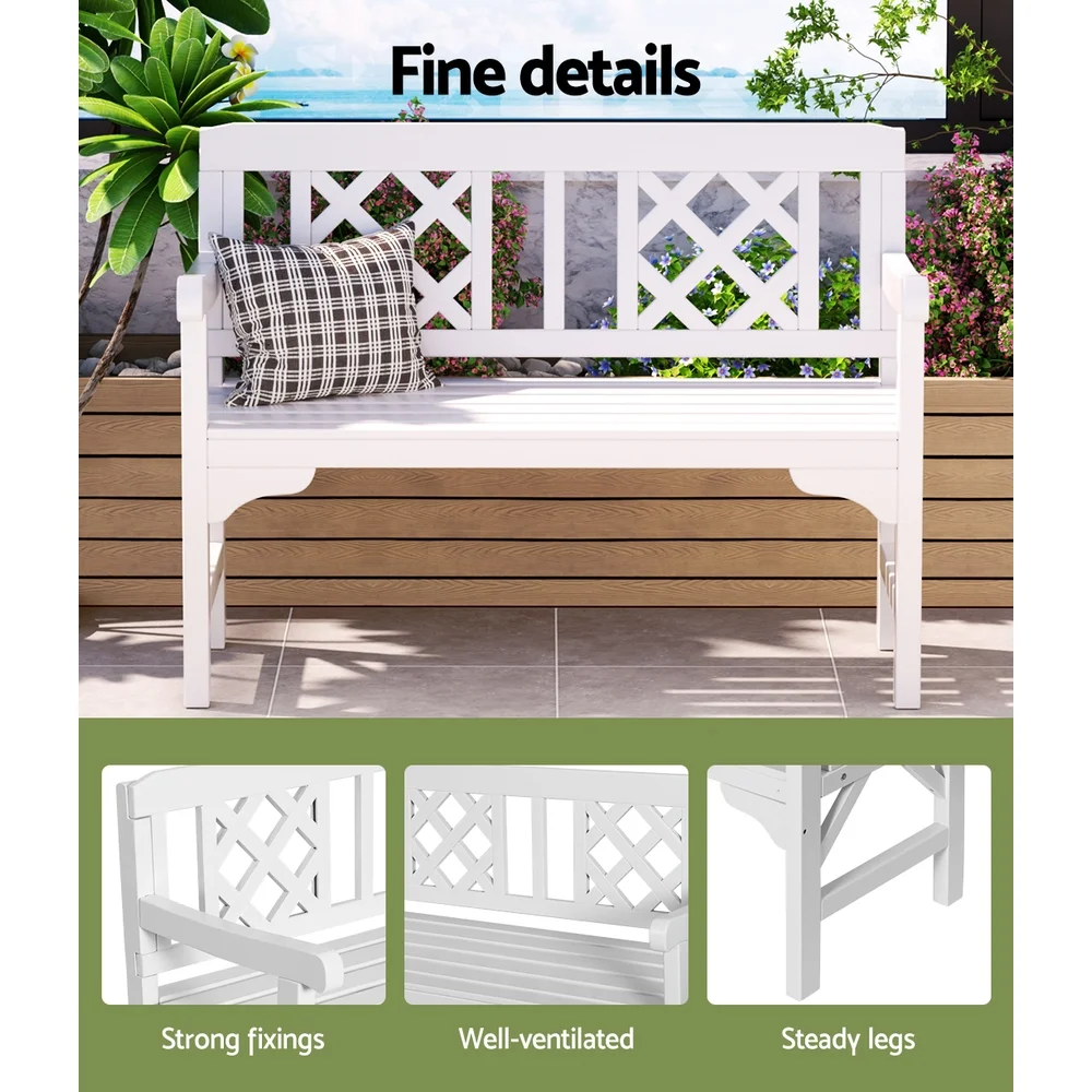 With its appealing rustic vibes, our Gardeon Garden Bench is perfect for outdoor or indoor use. The beautiful natural fir wood construction is meticulously handcrafted to bring out its finest qualities. The finishing is impeccable as is the classic design that will certainly stand the test of time and trends. The lattice-pattern backrest adds character to the bench while also providing sturdy support. With ample space to seat two, the bench features a strong inherent structure that can take weights of up to 250kg with minimum hassle. Not least, the bench is designed to ensure that your comfort is always forefront in its form and function.