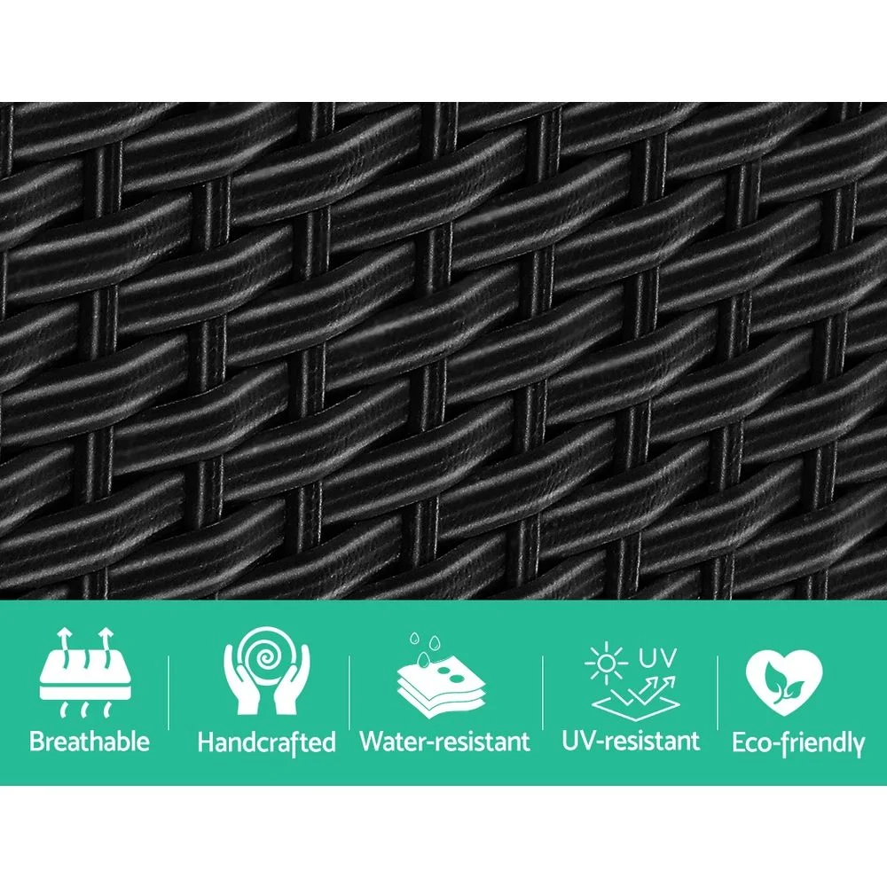 With its cool modern vibes, our wonderful Gardeon Tete-a-tete Set is just perfect to spend the day with your bestie. Equally stylish and appealing when used indoors or outdoors, our wicker set is designed to please and create a sense of exotic chic. With two integrated armchairs and an adjoining table, the ensemble features a strong inherent structure with ample weight capacities for armchairs and table. The UV-resistant and weather-resistant PE wicker is meticulously weaved to bring out the exceptional workmanship and the chairs exude luxurious comfort with high-density foam cushions. Better still, the table features a double-deck design for extra storage space with a 5mm thick tempered glass tabletop for a sleek look and easy maintenance. Not least, the powder-coated steel frame ensures that corrosion and rust are never an issue with this elegant set.