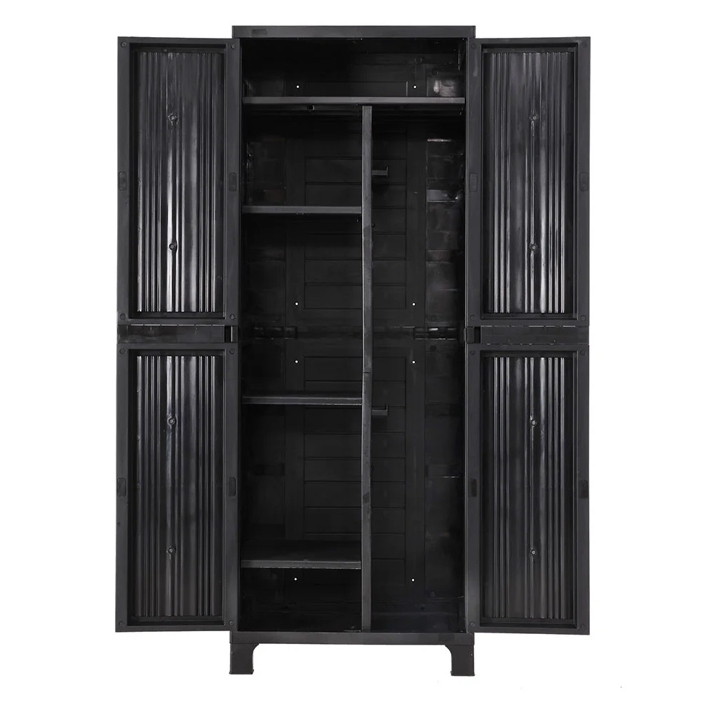 Need a more stylish looking outdoor storage cabinet that also does the work efficiently? Our Gardeon Outdoor Cabinet fits your bill perfectly. Tall, slim and pleasant-looking. Inside, the cabinet has ample storage with adjustable and removable shelves with weight capacity of up to 6kg each for customised storage options. Perfect for storing all your gardening paraphernalia and other tools and equipment of all shapes and sizes. Better still, there is also a pegboard with four hangers to hook up your hoses, ropes and similar items. Outside, the weather-resistant cabinet features premium plastic construction with corrugated panels for both reinforced support and stylish looks. Security and safety are also enhanced with lockable doors that can be secured with a range of locks. Not least, the entire unit stands on large stilted feet to keep it away from floods, spills or wet floors. So, do not just get any storage cabinet in your backyard. Make it our Gardeon Outdoor Cabinet for years of safe and durable usage.