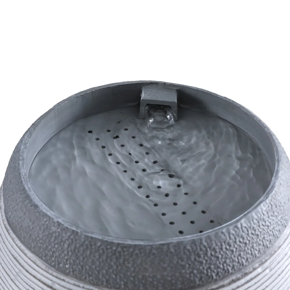 PROTEGE Contemporary Solar Powered Water Feature Fountain with LED Lights - Dark Grey