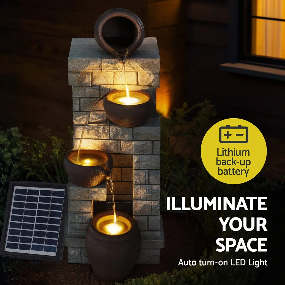 Transform your surroundings with the Gardeon Solar Water Fountain, a blend of style and functionality. Featuring a classic cascading design, this solar-powered fountain creates a tranquil atmosphere with its soothing water flow and underwater LED lighting. Equipped with a lithium battery, water pump, and solar panel, it ensures continuous operation, even on cloudy days, making it ideal for both outdoor and indoor spaces.