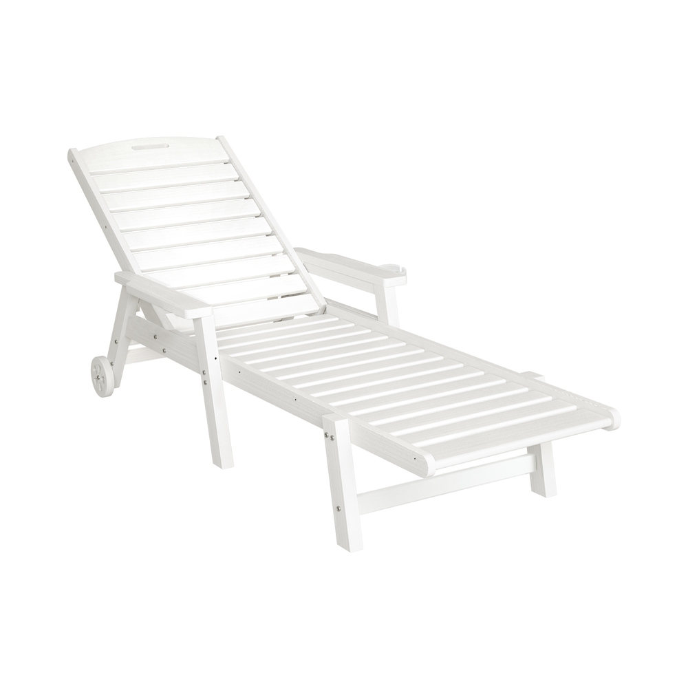 Upgrade your relaxation with the Gardeon 4-position adjustable chaise lounge! Featuring a versatile reclining backrest, this lounge chair adapts perfectly to sunbathing, reading, or napping. Its sturdy frame supports up to 150kg, while the rolling wheels and handles allow for effortless repositioning. Crafted from weatherproof wood-grain HDPE and 304 stainless steel, it resists sun, rain, and wind without fading. The chair includes a convenient cup holder and is designed for quick setup—so you can start enjoying it immediately with minimal effort. Ideal for poolside, patio, or beach relaxation.FeaturesWeather-resistantUV-resistantHDPE framePull-out cup holder4-position adjustable backrestEasy-move wheels & handlesSimple assembly requiredSuitable for the beach, poolside, backyard or indoorSpecifications:Brand:GardeonFrame Material: HDPEOverall dimensions:168-202 x 82 x 30-88cmWeight capacity: 150 kgColour: WhiteNumber of package:1Package ContentGardeon Sun Lounger X1Installation manual X1This product comes with 1 year warranty