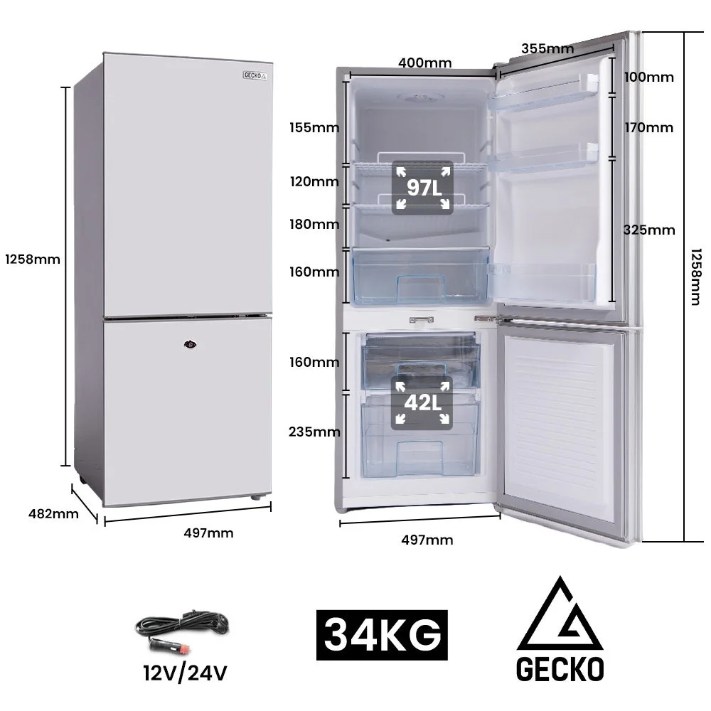 GECKO 125L Portable Upright Fridge, 12V/24V for Motorhome, Caravan, Silver