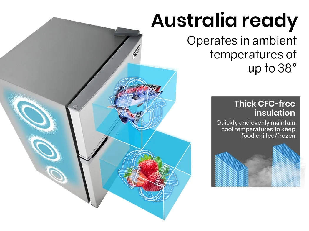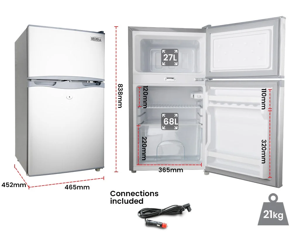 The Gecko Portable 95L Upright Refrigerator/Freezer has everything you need to enjoy fresh food and chilled beverages anytime, anywhere.