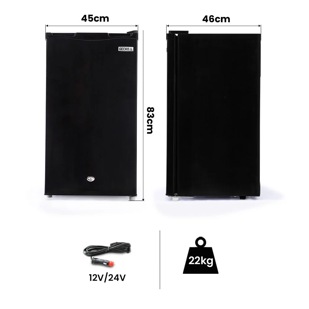 he Gecko 95L Portable Upright Fridge has everything you need to enjoy fresh food and chilled beverages anywhere, anytime. This quality unit has what you need for long road trips in your motorhome or caravan, marine adventures or for use in an off-grid cabin or tiny home.