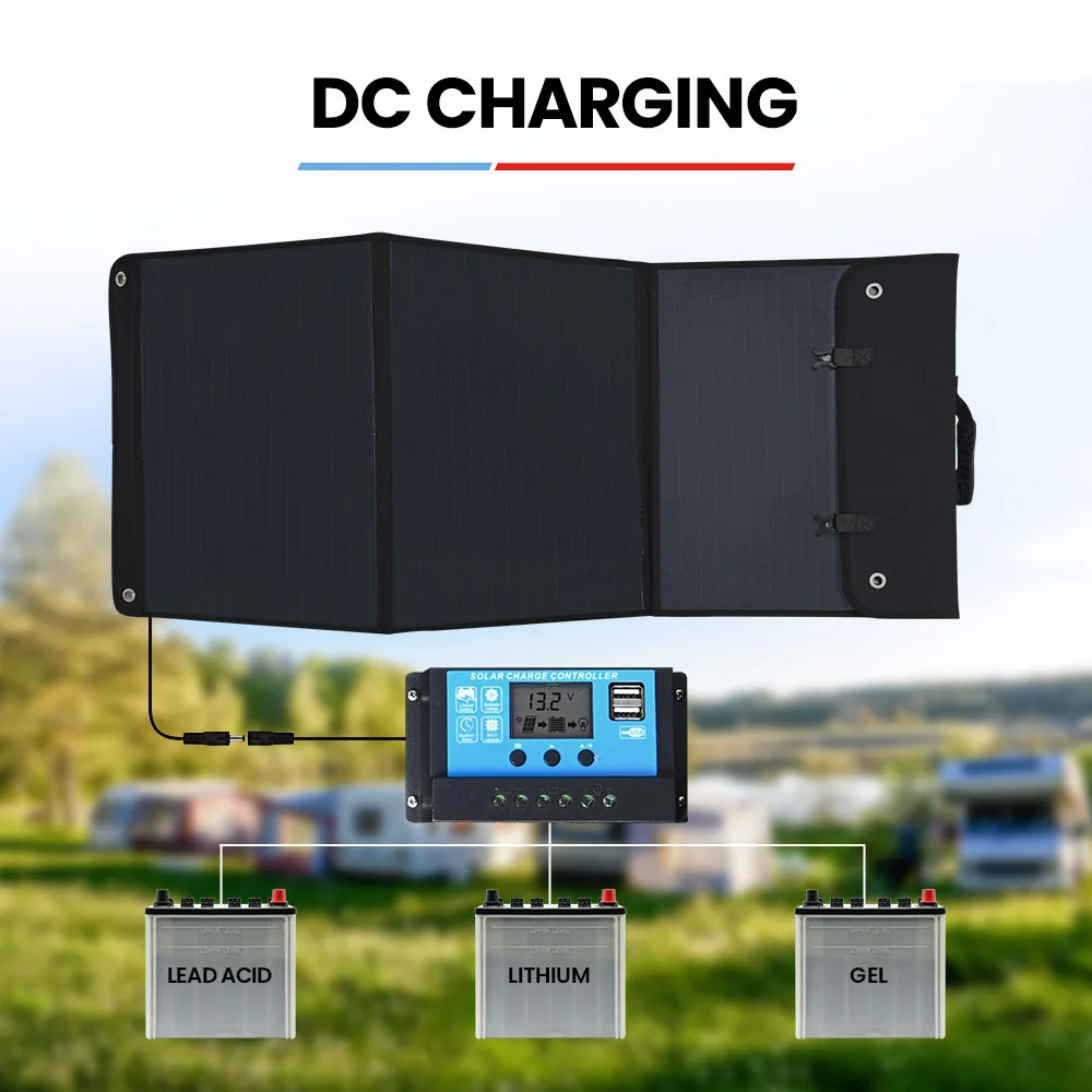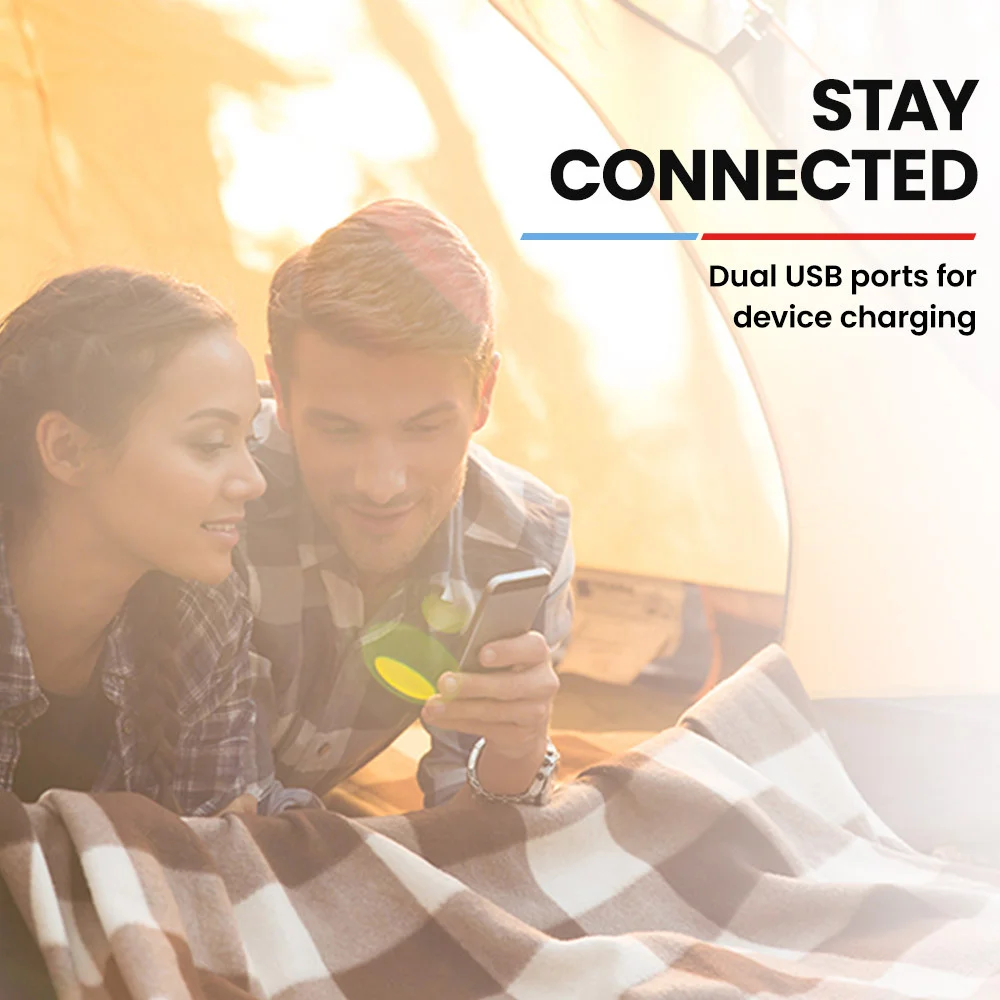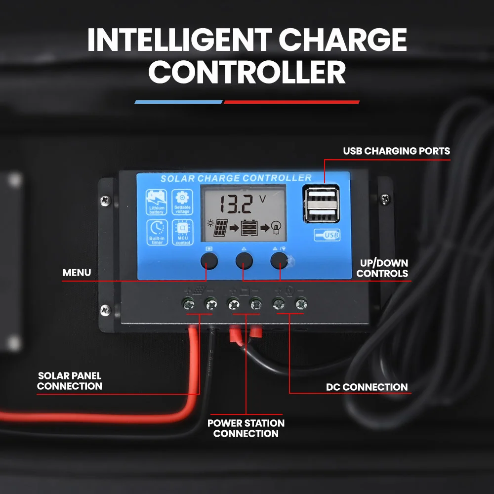 The PV3100 Solar Panels feature a built in intelligent charge controller that allows you to use preset output voltages to optimise and ensure power is safely and efficiently transferred to the battery or device of your choice. The charge controller comes equipped with a 12-24V 4A 8mm DC connection to charge deep cycle, AGM and standard lead acid batteries and suits most lithium power stations. It has 2 USB-A (5V, 2.0A) ports for convenient device charging without draining your power station or battery making charging faster.
