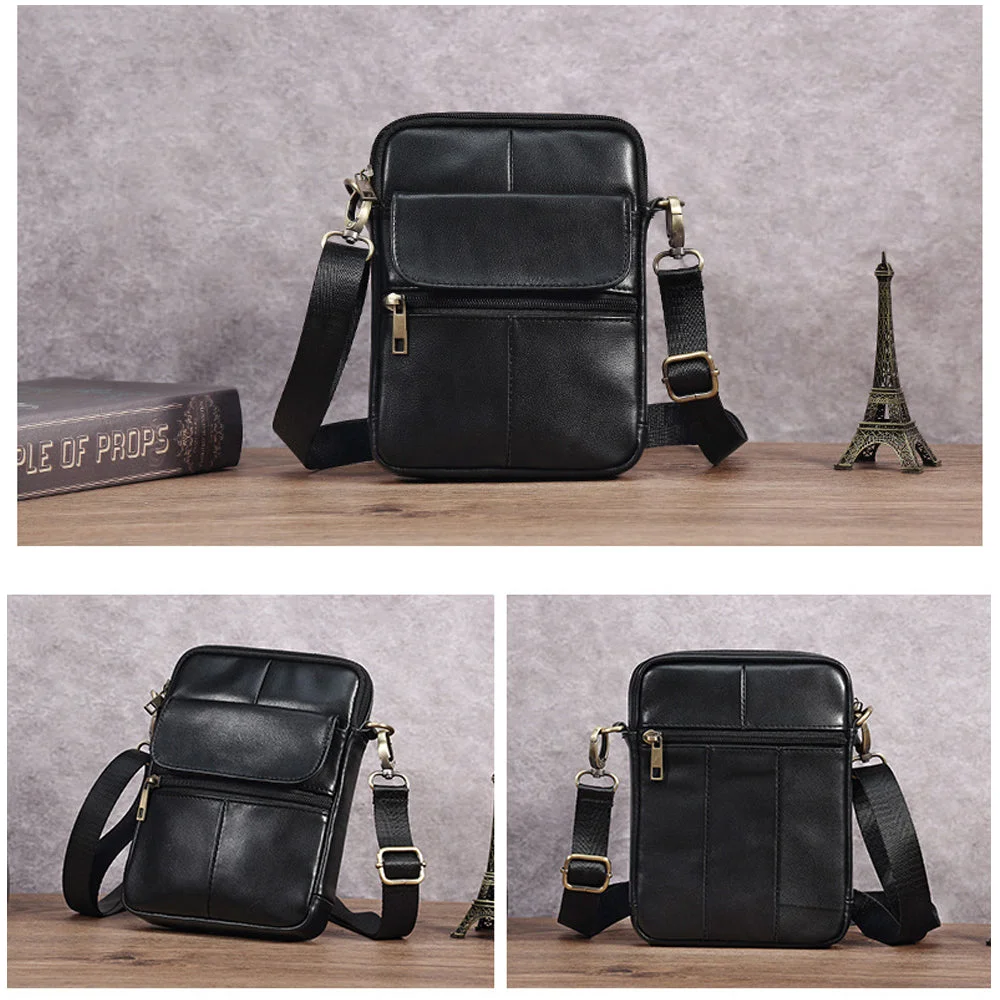 - This Men's Genuine Leather Crossbody Bag, Satchel is a versatile and stylish accessory that suits various occasions. Crafted from high-quality full-grain cow leather with a matte finish, it exudes an elegant and timeless appeal. The brass-toned hardware complements the leather's texture, adding to its overall aesthetic.
