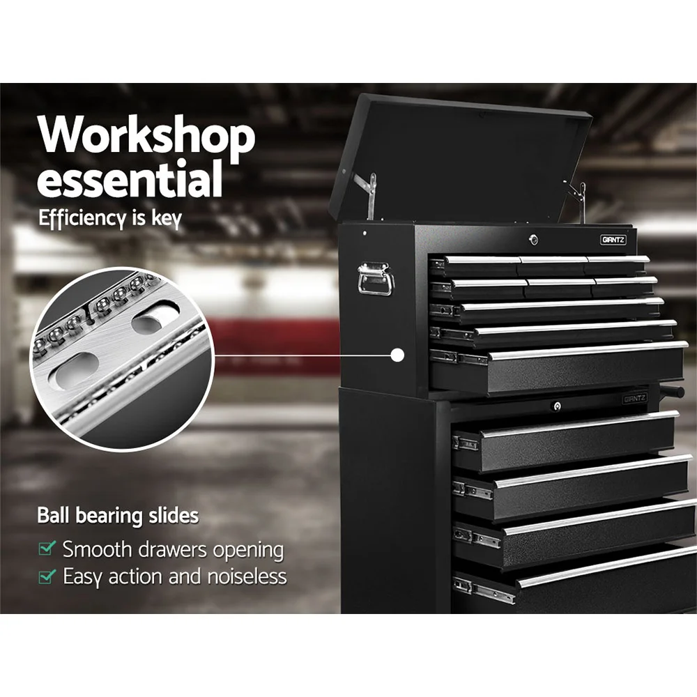 Giantz 10 Drawer Tool Box Cabinet Chest Toolbox Storage Garage Organiser Black