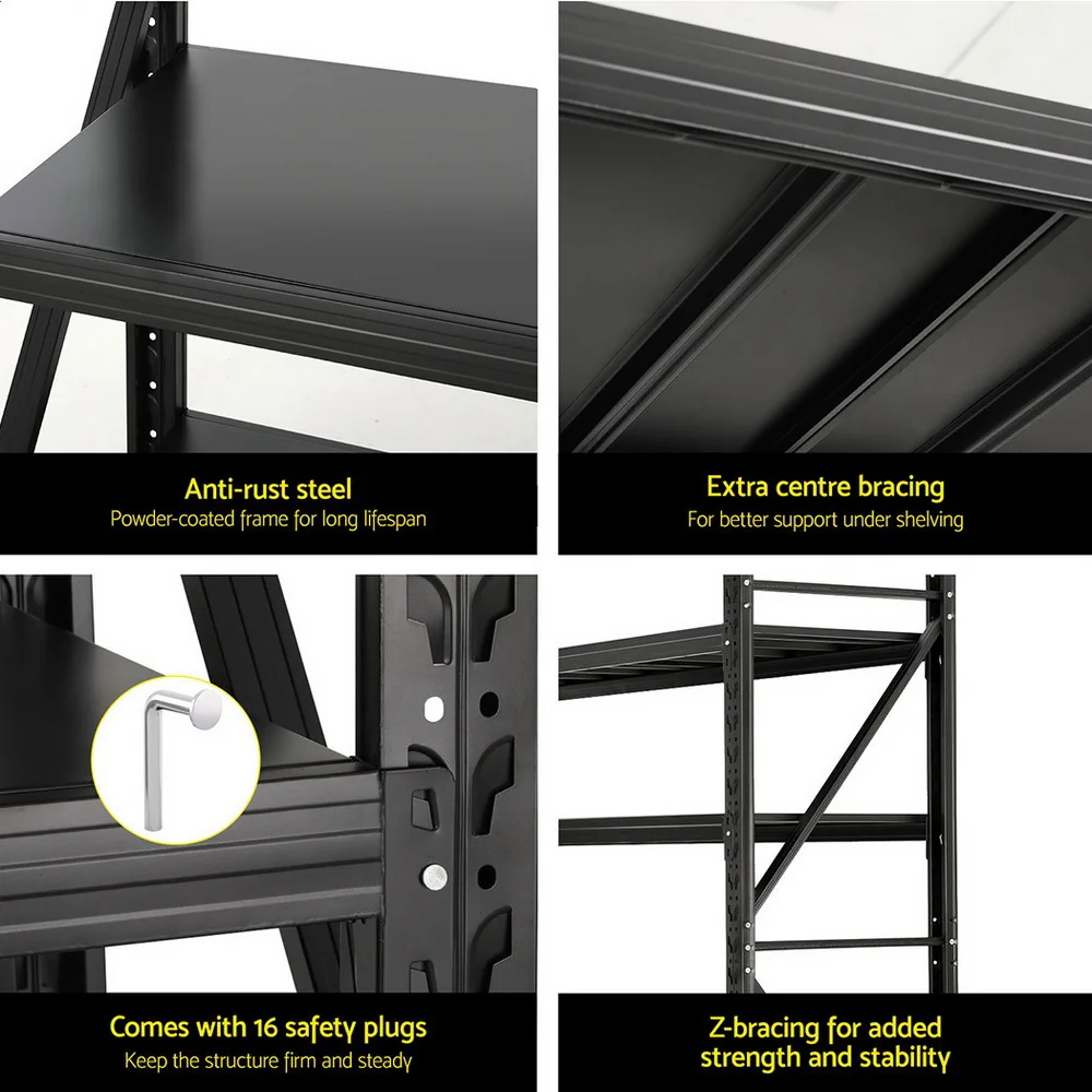 Conquer your storage woes with the Giantz heavy-duty storage rack! Built with industrial-strength steel and a reinforced frame, each shelf boasts a massive 200kg capacity, making it ideal for storing even the bulkiest items. Z-bracing provides additional stability, while the adjustable shelf height allows you to customise the configuration to fit your needs. A rust-resistant coated finish ensures long-lasting durability, and the included safety plugs prevent potential tipping accidents. Easy to assemble, this storage rack is the perfect solution for maximising space and organisation in your garage, workshop, basement, or any area needing a storage upgrade.