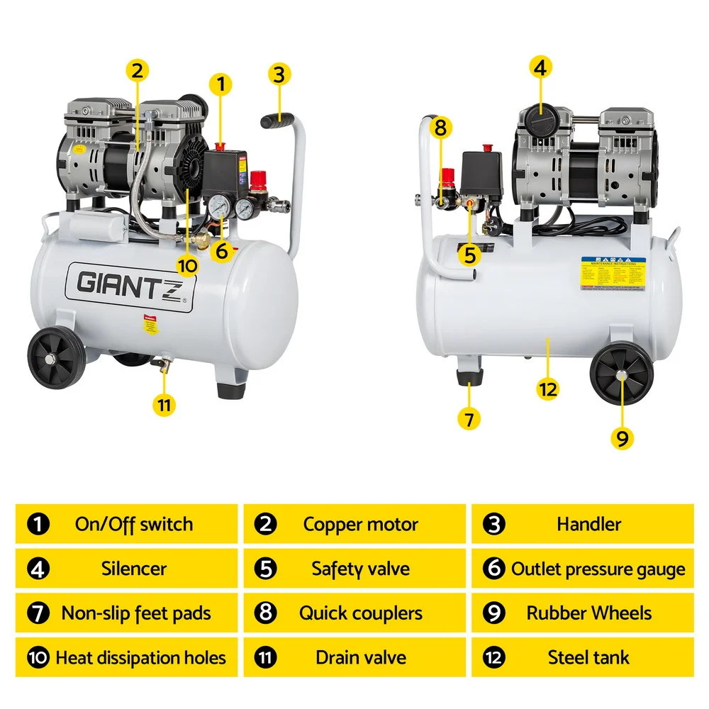 Designed with ultra-quiet technology, it runs smoothly without disturbing your workspace. Lightweight and easy to move, the Giantz Air Compressor offers professional-grade power and convenience — perfect for any project, big or small.