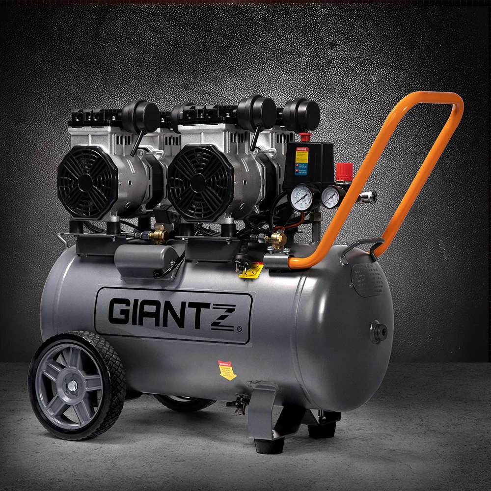 For light vehicle repairs and regular air tool operation, the Giantz Air Compressor is your go-to product. This 50L compressor boasts a pressure of 116psi and 2 twin-cylinder motors for powerful performance on a wide range of applications including tire inflation, spray painting and woodwork. With its oilless lubrication system, you can say goodbye to messy maintenance. It features quality aluminium finned heatsinks to prevent overheating, precise airflow auto control and a pressure safety switch. Plus, its ultra-quiet operation won't disturb your work environment. Easy to move around thanks to its smooth wheels, non-slip feet and easy to grab handles, the Giantz Air Compressor is great for any project no matter how small.