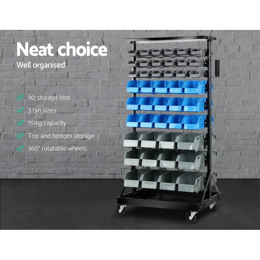 Maximise your tools storage space and get your work done more efficiently with the GIANTZ 90-bin Storage Rack.