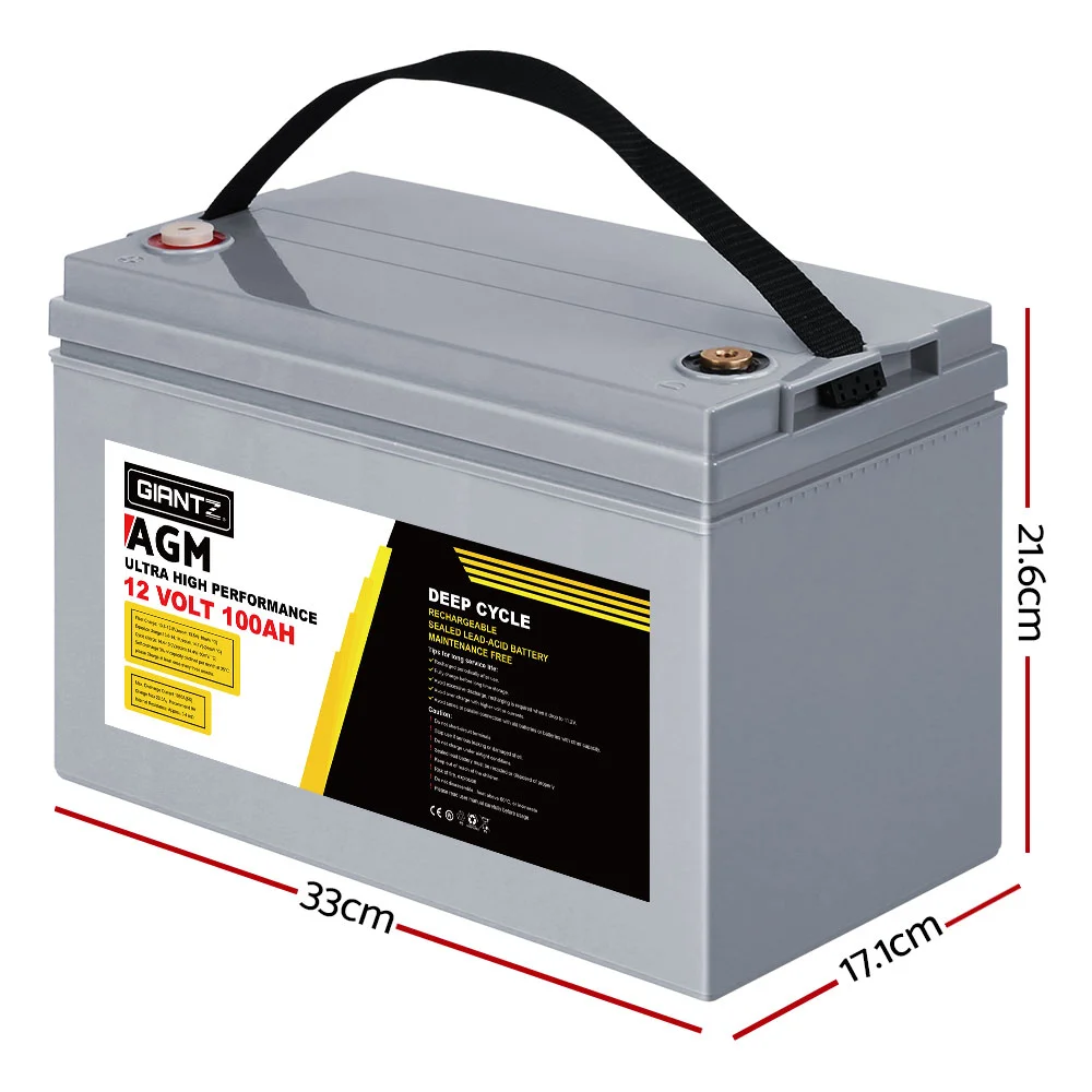 Our portable GIANTZ Deep Cycle Battery provides off-the-grid power supply for 4WD vehicles, caravans, campers, trailers, motorhomes, saltwater/marine applications, and all 12V appliances including portable fridges and washers. The 100Ah 12V battery features an incredible cycle life of up to 1400 cycles, making it one of the most enduring in its class. What you get is a longer, consistent and more drawn out charge all the time. And with its advanced AGM technology, the battery enables better electrolyte absorption, cyclic stability and frequent charging without affecting performance. The bolt down terminals also allows for more reliable experience, and not least, the high oxygen-recombination efficiency results in superior deep discharge recovery. The maintenance-free deep cycle battery is completely sealed, spill-reistant and does not leak gas for added safety and durable use.