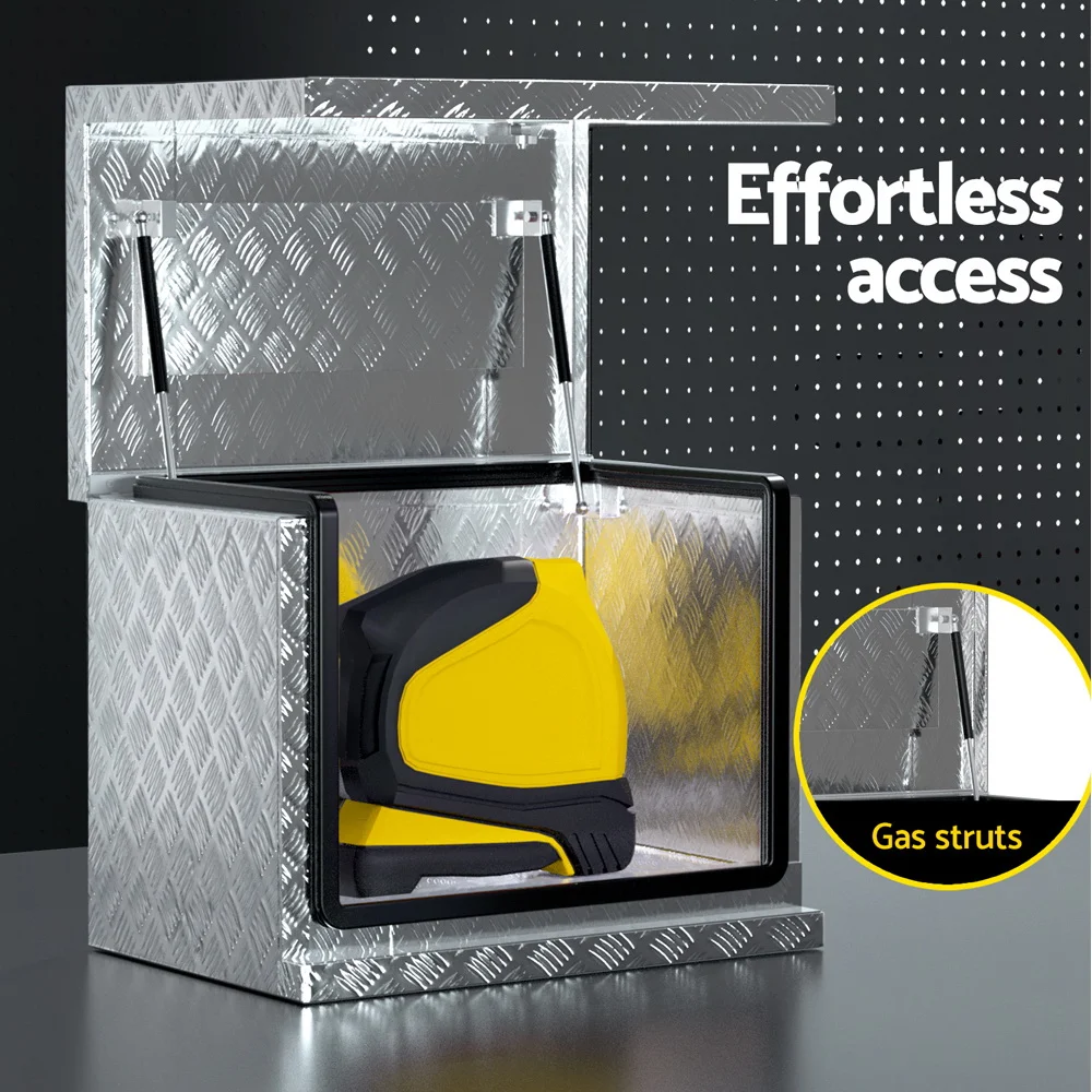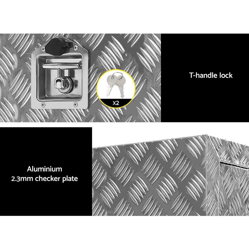 Working on-site throughout the week? Keep your tools secure and locked away with the Giantz Aluminium Toolbox. Made from heavy-duty aluminium with a stainless-steel piano hinge, nothing is going to disturb your tools. The 2.3mm thick checker plate design is aesthetically pleasing as well as non-slip. The durable rubber seal and fully welded seams keep the box weather and dust-resistant - nothing will get into your toolbox, no matter the weather or location. Heavy-duty T-handle locks will keep your tools secure, and we've included two keys for your convenience. The lift-up gas struts and open-top design allow for effortless access. Don't worry about your tools while you're on the job. Get yourself a Giantz Aluminium Toolbox today.