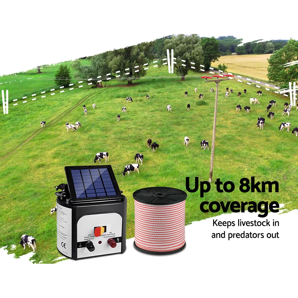 Giantz Fence Energiser 5KM Solar Powered Electric 400M Poly Tape Insulator