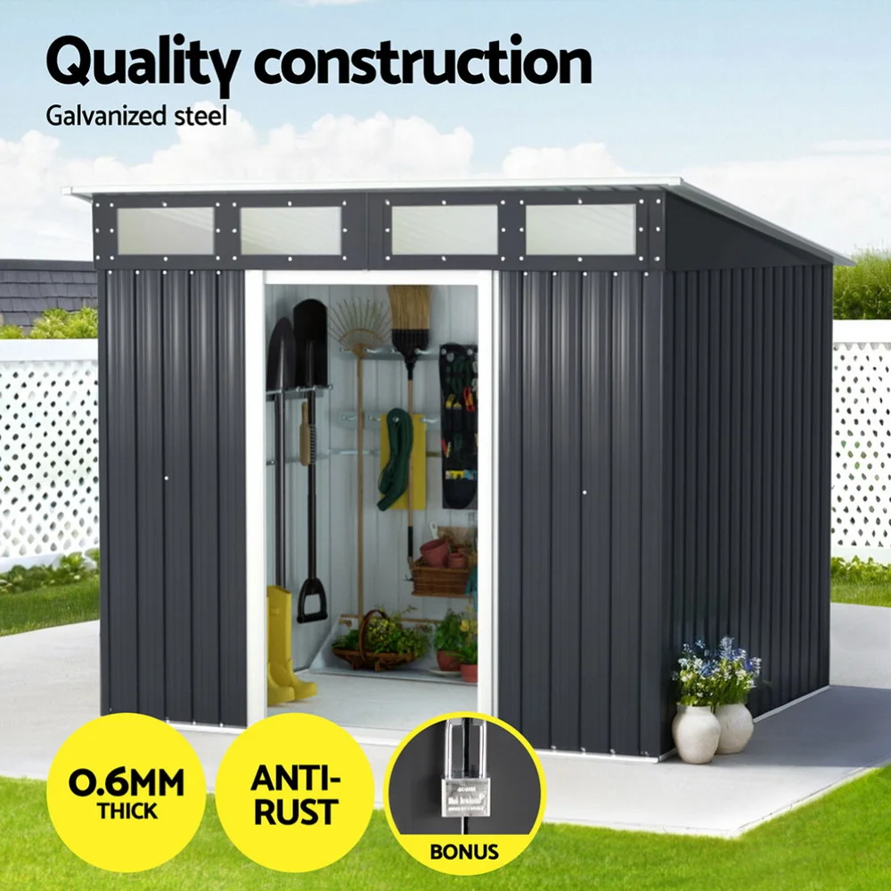 The Giantz Garden Shed provides durable and long-lasting outdoor storage with galvanized steel and polypropylene (PP) construction. It features a sloped roof, double sliding doors, four air vents, and easy assembly. Maintenance-free and corrosion-resistant, it includes a lock for added security.