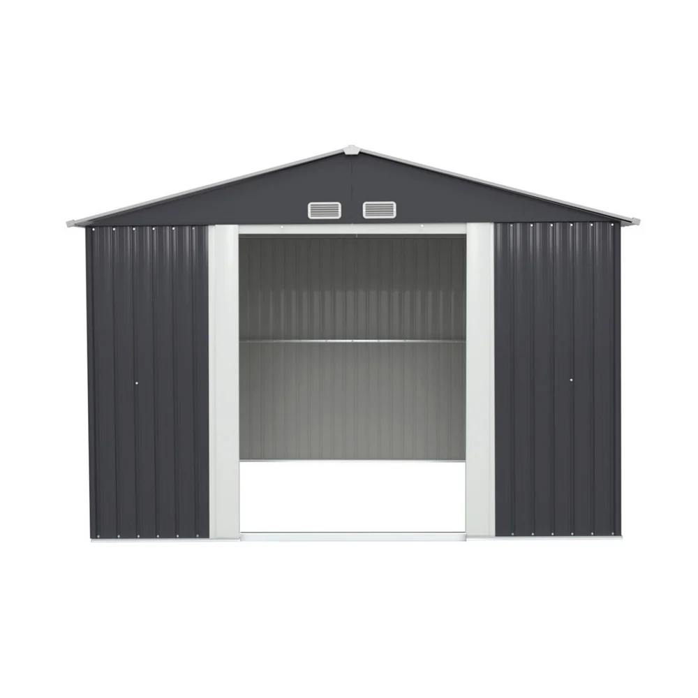 The Giantz Garden Shed offers durable and long-lasting outdoor storage. Made from galvanized steel and polypropylene (PP), it features a sloped roof for water runoff, double sliding doors for easy access, and four air vents for ventilation. This maintenance-free, corrosion-resistant shed also includes a lock for added security.