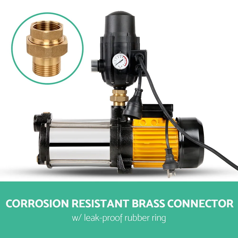 The GIANTZ 5-stage Water Pump features an IP rated motor, full stainless steel pump body, cast iron ends, one-inch inlet and outlet ports, corrosion-resistant brass connectors, efficient cooling system and not least, built-in run-dry thermal protection.