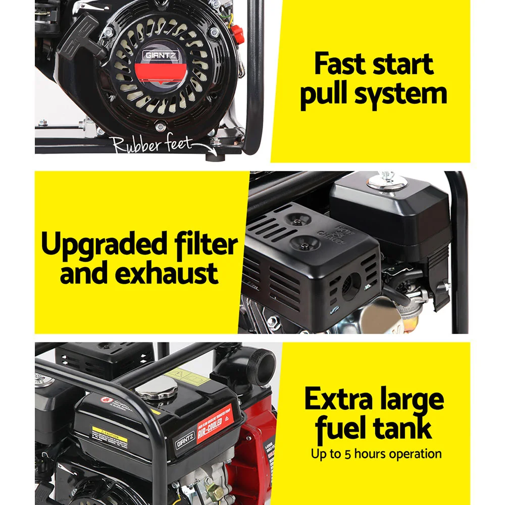 The GIANTZ 2-inch High Flow Petrol Water Pump provides outstanding performance for general water pumping applications. Whether it's for applications such as heavy duty cleaning, irrigating the garden or pumping out a flooded cellar, you'll be amazed with the versatility and performance our monster Water Pump.
