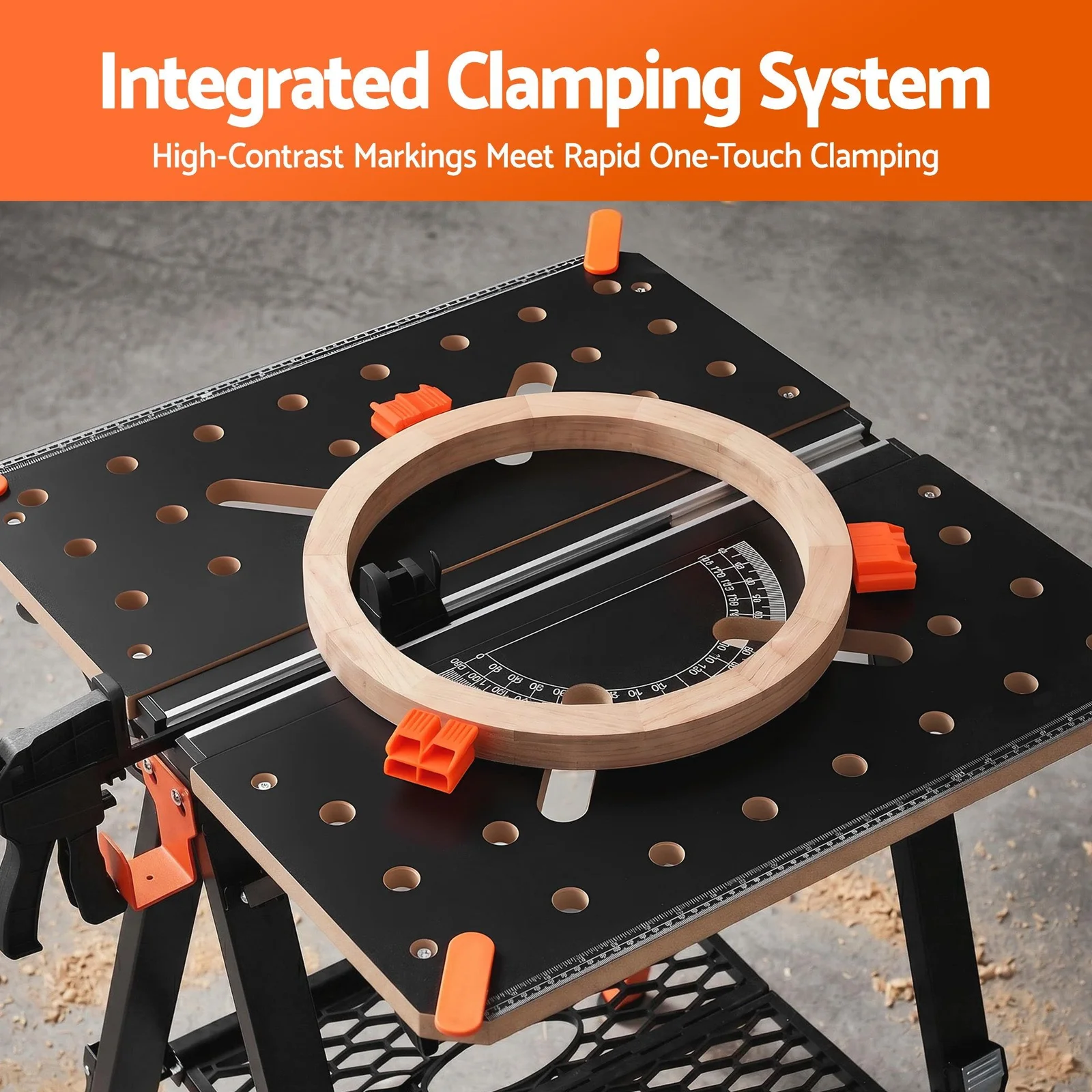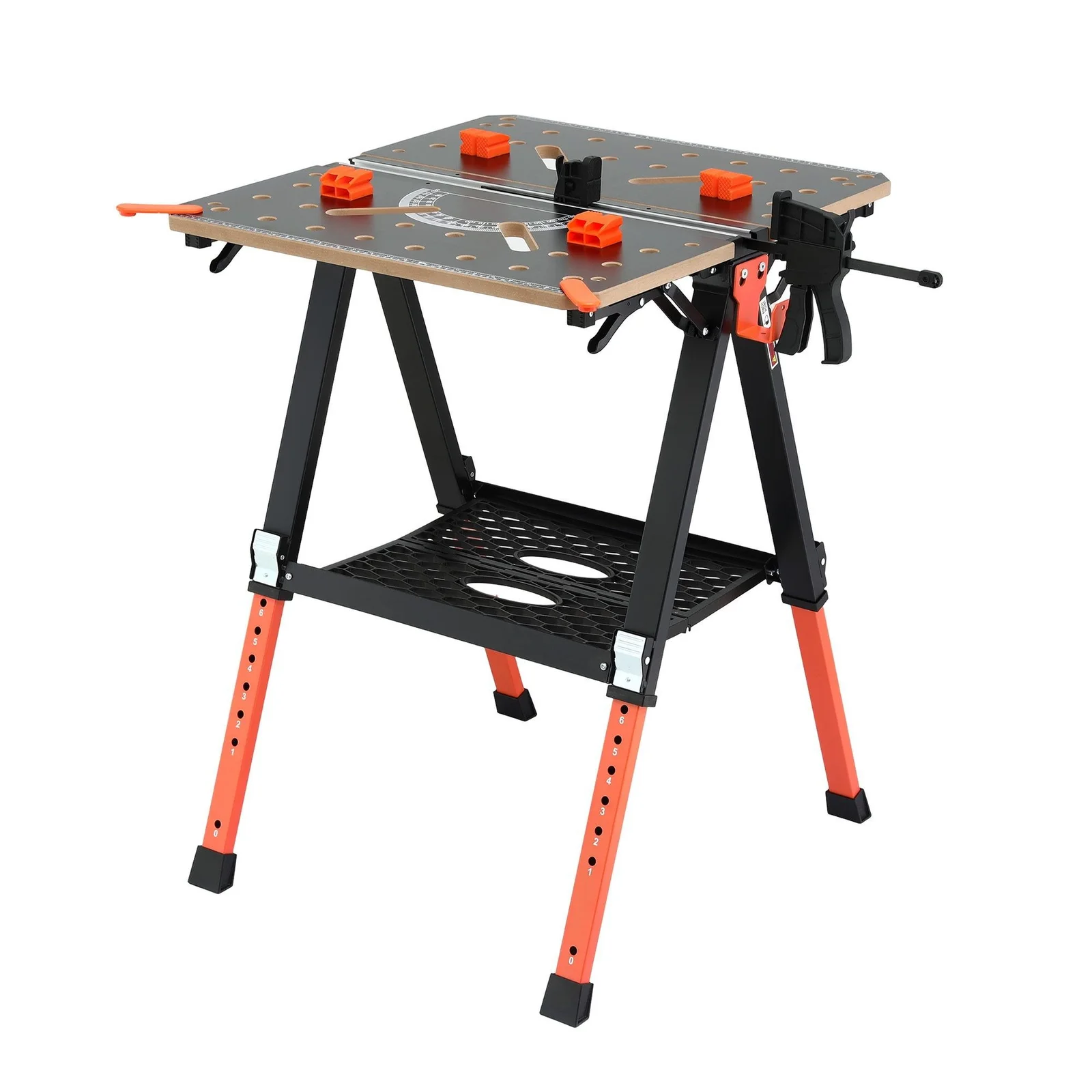 BAUMR-AG Portable Multifunction Workbench, 2-in-1 Worktable and Sawhorse, Height Adjustable, Expandable