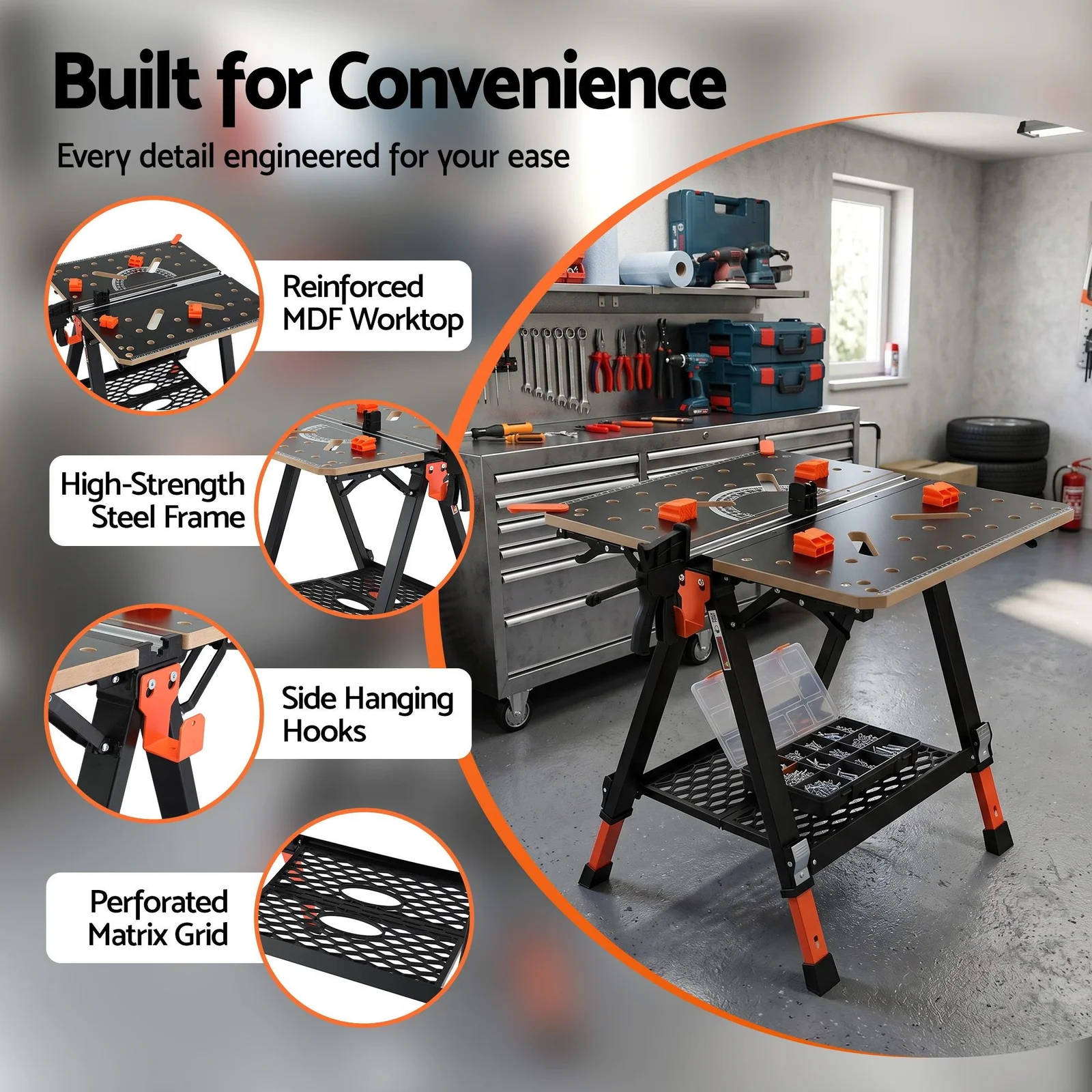 Transform any space into a professional workstation with the Giantz Portable Folding Work Table. Designed for carpenters, DIY enthusiasts, and home repairers, this versatile table replaces flimsy, fixed-height plastic alternatives with a robust steel and MDF construction. Whether you are cutting timber in the driveway, assembling furniture on an apartment balcony, or packing orders in your garage, this workbench adapts to your exact needs.