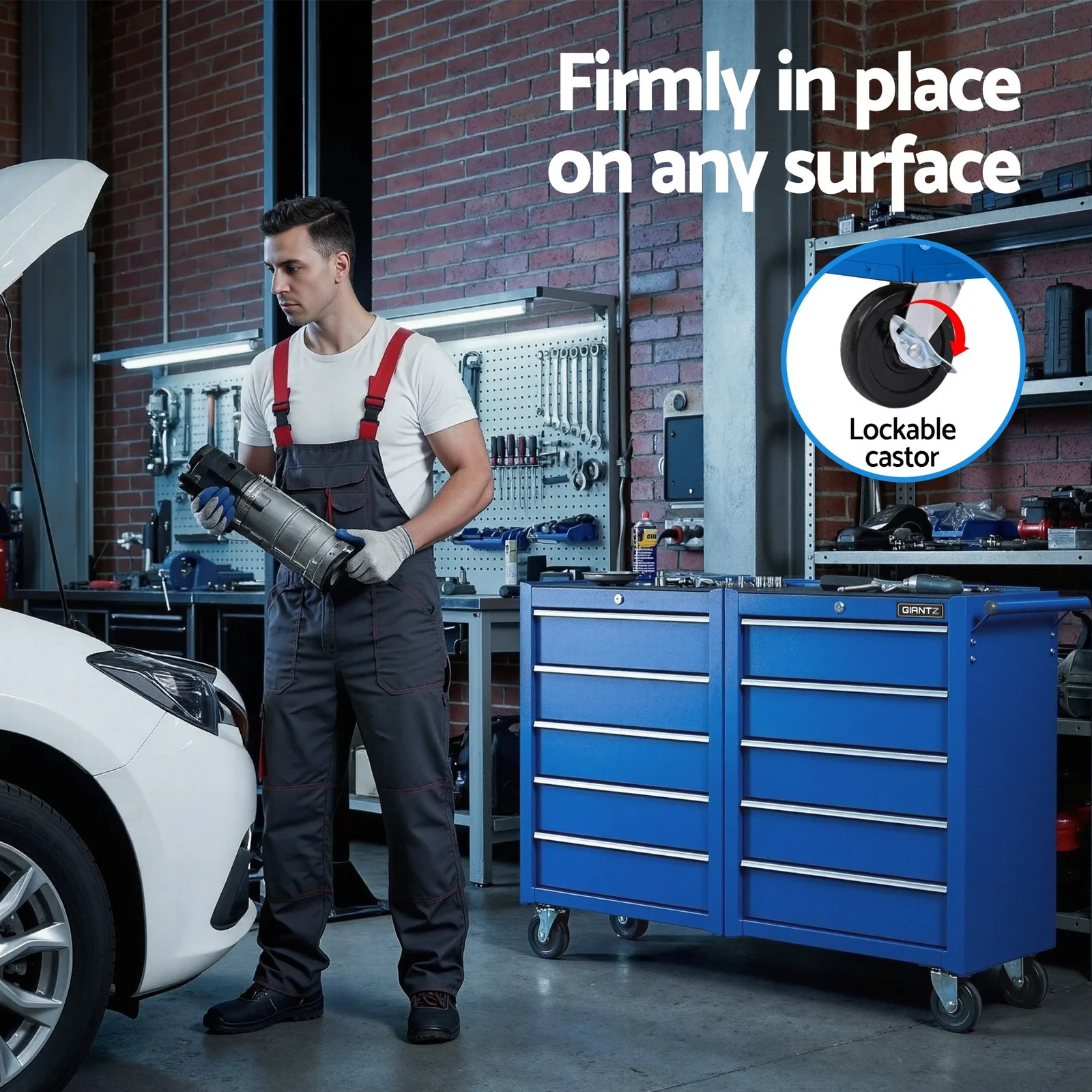 Organise your workspace with Giantz heavy-duty tool chest trolley, built from high-tensile powder-coated steel and supporting up to 100kg. Featuring 10 smooth-gliding drawers with ball bearing slides and non-slip liners, it keeps tools secure and easy to access. An upgraded cam lock with 2 keys protects your equipment, while four castor wheels with two lockable and a sturdy handle ensure easy movement and stable positioning. Sleek and functional, it's perfect for organizing and protecting your valuable tools.