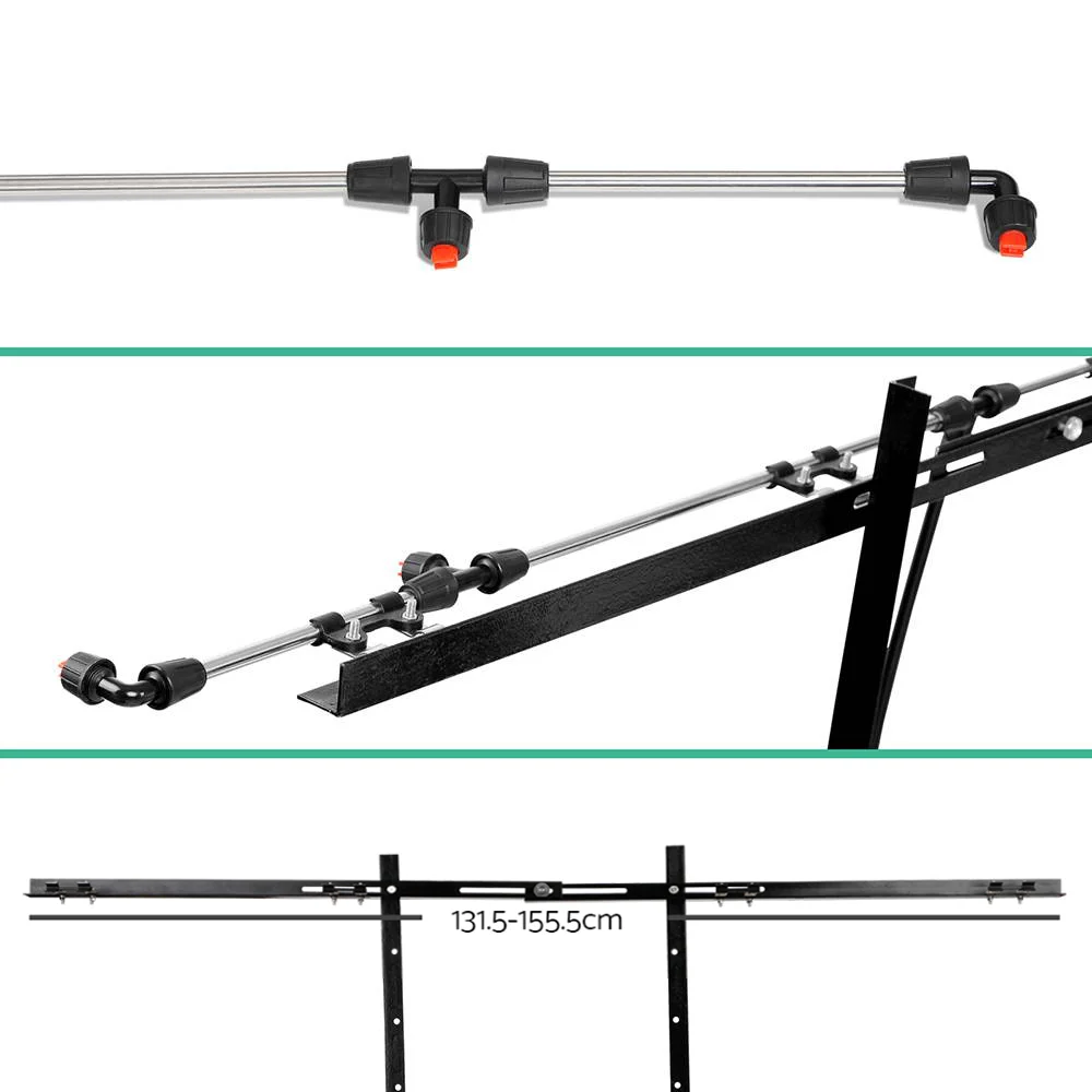 The 68cm long spray lance connects easily to a 1.5m chemical-grade hose as well as to the adjustable 4-nozzle boom rack for an effective spray width of up to 2.5m. A bonus hand-held spray nozzle and 5m chemical-grade hose are also included with the purchase.