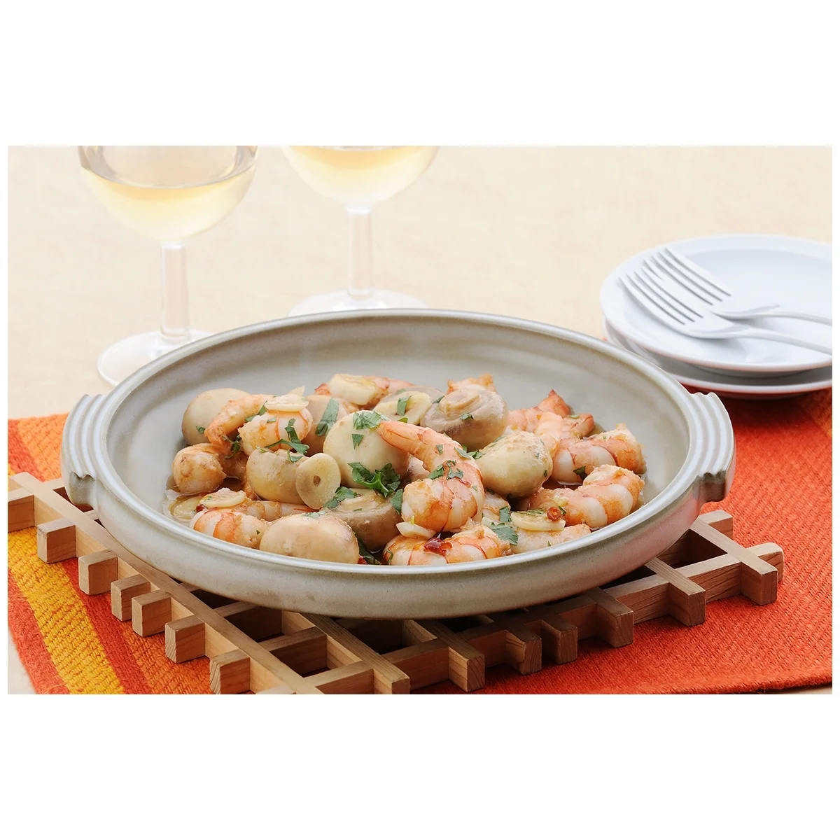 This Ginpo Mishima toban pot is made from heat resistant ceramic and is ideal for cooking a range of Japanese dishes. It has a stacking structure that overlaps perfectly, saving space around the kitchen, and it's microwave, oven, stove and dishwasher safe. Not IH compatible.