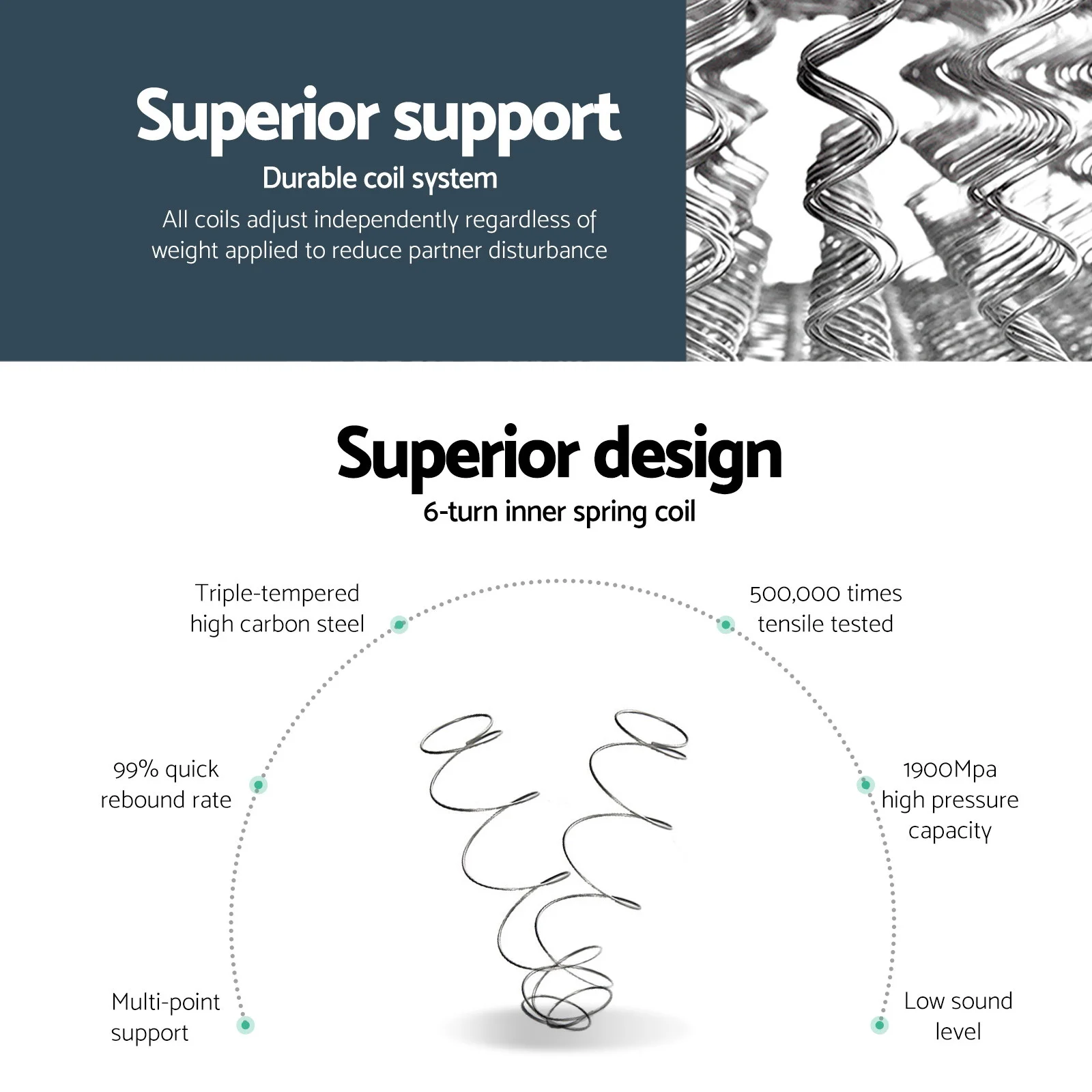 Unlike a pocket spring system, a Bonnell spring system uses springs that are hour-glass shaped rather than all of the same diameter. The result is a somewhat firmer mattress than a pocket spring version. The benefits include better support for your body, more resilience and better ventilation. Our mattress delivers all of the above with a level of comfort that surpasses your expectations. The mattress is meticulously constructed with layers of premium materials. A high density foam fills the inside of the mattress in between the stable Bonnell spring core while the exterior is fully wrapped with a luxurious polyester fabric. Not least, a soft quilting layer rests on top of the entire ensemble. Essentially, you get a solid mattress that retain its shape well for longlasting use and yet supple and comfortable to enjoy all its inherent benefits for you. As with all of our quality mattresses, the mattress is allergy-free and treated for dust and mould resistance. Available in Single, King Single, Double, Queen and King sizes.