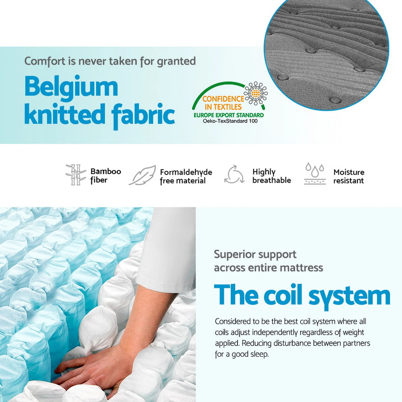 The Giselle Bedding Alanya Series features a 34cm profile with medium-firm support, designed for adaptive comfort. Its 500g bamboo charcoal knitted fabric promotes a fresher sleep environment, while plush Euro Top padding enhances surface cushioning. The mattress core integrates 5-zone pocket springs with independent 6-turn coils for targeted spinal alignment, complemented by high-density foam for lasting structural support. This combination delivers balanced pressure relief tailored to Australian sleep preferences.