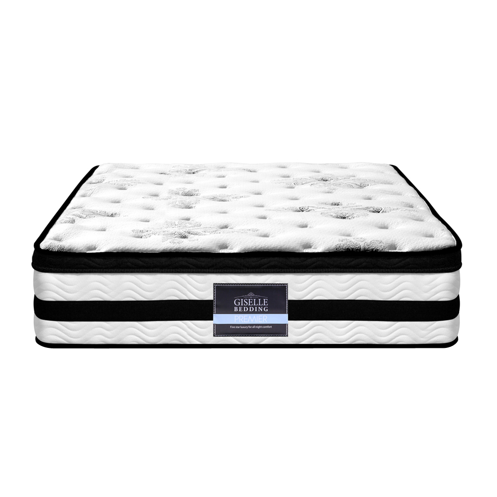 Pamper you and your partner with Giselle Bedding Algarve Series Euro Top Mattress that will give you a soothing sleep night after night. All you wanted is to sleep through the night and wake up refreshed in the morning. This is the mattress that is made for that.The lavish construction addresses all elements that will offer you a comfortable and luxurious experience – Euro Top padding, high-density foam and independent coil system. A mattress that is made with cutting edge technology to make sure everyone who sleeps on it will benefit from it. An absolute luxury providing you with an undisturbed sleep all night long.A well-established bedding brand that aims to provide you with a good night sleep. Purchase now for door-to-door delivery. Vacuum packed in a hygiene packaging, we ensure a clean and well-packed mattress arrive at your doorstep safely.FeaturesPlush Euro Top paddingMedium-firm support34cm thick mattress5 zoned pocket springs – Different level of supportIndependent coil system – Excellent support and sublime comfort6 working turn coil systemHigh-density foamHypo-allergic materialLuxury knitted jacquard fabricSide handles for positioningSpecificationsSize: SingleNumber of coils: 450Firmness: 6.5 / Medium FirmThickness: 34cmDimensions: 190cm x 91cm x 34cmVacuum packaging: Item will expand to its normal shape within 2 days after unpackingPackage Contents1 x Giselle Bedding Euro Top Mattress 1 x Plastic bag cutter Care InstructionsDo not machine washDo not bleachDo not ironDo not dry cleanDo not saturate with water or other cleaning liquidsTreat spills with a cloth and dry with blow dryer May be spot cleaned with water or soapRotate mattress regularly Vacuum using low suction