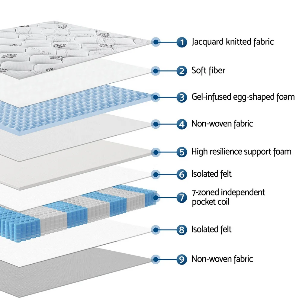 Discover the Giselle Bedding Galaxy Series. This 35cm Double Mattress offers 7.5 medium firm support. It features a 7-zone pocket spring system for zero partner disturbance and cooling gel-infused foam. Wrapped in a premium Belgium knitted fabric, this hybrid mattress is the ultimate in comfort.