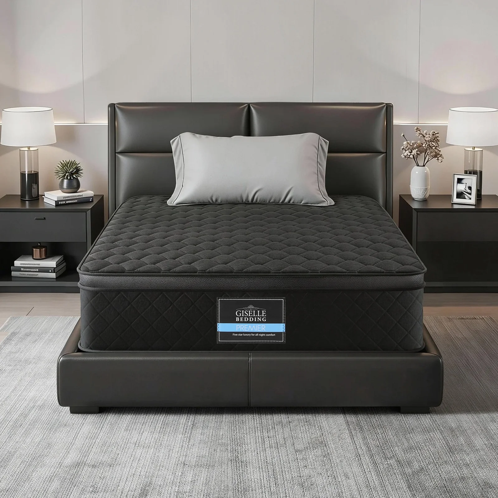 Redefine your sleep sanctuary with the Giselle Bedding Muse Series. Standing apart from the ordinary, this 34cm thick mattress features a striking black Euro Top design that brings modern luxury and easier maintenance to your home. Inside, high-density egg-crate foam improves airflow and pressure relief, while the 5-zone pocket spring system delivers targeted support to align your spine perfectly. Finished with breathable 4D mesh borders for maximum ventilation and reinforced edges for stability, the Muse Series is the ultimate blend of bold aesthetics and ergonomic comfort.
