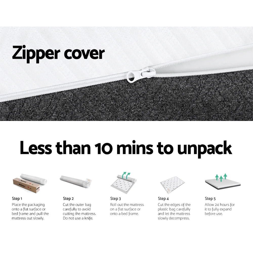 Sink into comfort with the luxuriously soft and sleep-inducing Giselle Bedding Memory Foam Mattress. The mattress features a multi-layer foam structure and dual-sided firmness to ensure the ultimate comfort. The top layer features CertiPUR-US certified cool gel memory foam to keep you at the ideal temperature during the night. The middle layer is constructed of egg-crate foam to provide comfort to back and side sleepers, as it provides additional support on the spine, hips and shoulders. The final layer consists of high-density foam to promote better sleep and pressure relief. The mattress overall has a soft-medium firmness that is ideal for a wide range of sleepers. The mattress is made from hypoallergenic, dust-mite-resistant jacquard knitted fabric and has a washable, removable zip cover for easy cleaning. With such amazing support, you'll experience zero partner disturbance throughout the night, empowering you to get a great night's sleep every night. Your mattress arrives perfectly vacuum-packed and ready for you to remove and expand. What are you waiting for? Available in Single, Double, Queen and King sizes, you can sleep happy on your brand-new Giselle Bedding Memory Foam Mattress.