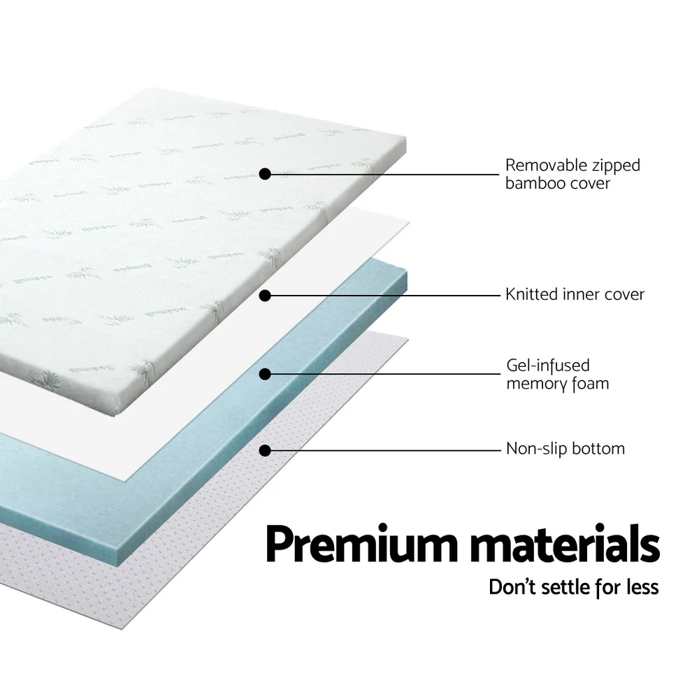 Add that extra bit of comfort to your mattress. An extra 5cm to be precise with our cool gel mattress topper. And the difference is simply wonderful. That's because our topper provides palpable relief to your pressure joints no matter how you sleep, a cooler sleeping surface and not least, individual contouring of your body shape thanks to the memory foam. The memory foam also helps to even body weight distribution, eliminate motion disturbance and dissipate body heat to keep your rest nice and cool. Eco-friendly in every way with its highly breathable bamboo fabric covering, our cool get mattress topper is just the extra that you need to turn your rest and sleep from good to great.