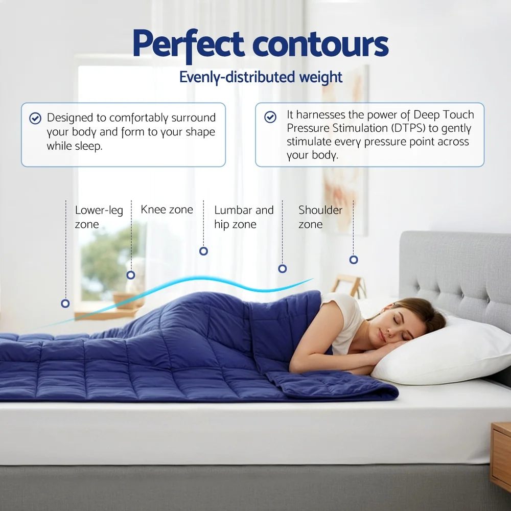Discover deeper, more restful sleep with the Giselle Bedding Weighted Blanket. Crafted with a premium microfibre cover, it offers exceptional softness and breathability, keeping you comfortable all night. The innovative 5-layer structure locks in high-density glass beads for stable weight distribution and long-lasting durability. With Deep Touch Pressure Stimulation (DTPS), the blanket evenly applies gentle pressure to stimulate pressure points, helping calm your body and mind. Designed to adapt to your body shape and posture, it enhances relaxation while improving overall sleep quality. Finished with secure stitching and four-band edges, this weighted blanket is not only effective but built to last—perfect for home, travel, or relaxation time.