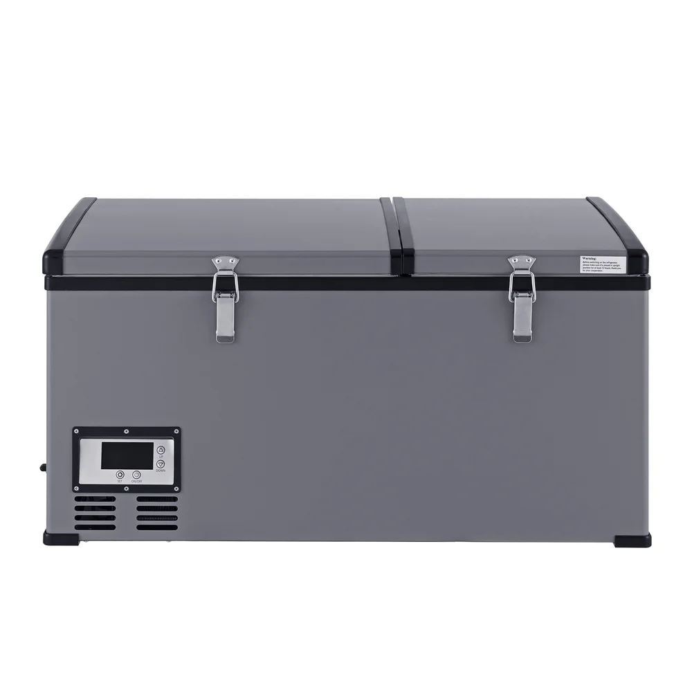 In the market for a portable fridge or freezer? Our exceptional Glacio Portable 80L fridge/freezer is one cool device with extraordinary performance. Perfect for use on the road or indoors, the fridge easily plugs into any 12V, 24V or 240V power point for the powerful compressor to kick in its cooling prowess. A simple LCD with even simpler operational settings allow you to start the refrigeration process easily: just turn on the power, set the temperature, and the genuine compressor will do the rest. The 60W compressor is very energy-efficient, about 1.44kWh for every 24 hours of use. When running on DC power, the battery has a 3-stage battery charging protection that cuts off charging once the voltage setting is attained to ensure longer-lasting battery life. The fridge has plenty of space for all your food and drinks with two spacious storage compartments, and you can change the temperature as low as -18°. With the dual bin temperature controller, you can set different temperatures in the two bins separately as needed. The heavy-duty exterior is designed to handle all the knocks and bumps of a road trip and comes with an LED light, safety locks and handles for convenience. With so much going for it, our Glacio Portable Freezer Fridge is a reliable cooler for all your outdoor (or indoor) escapades.