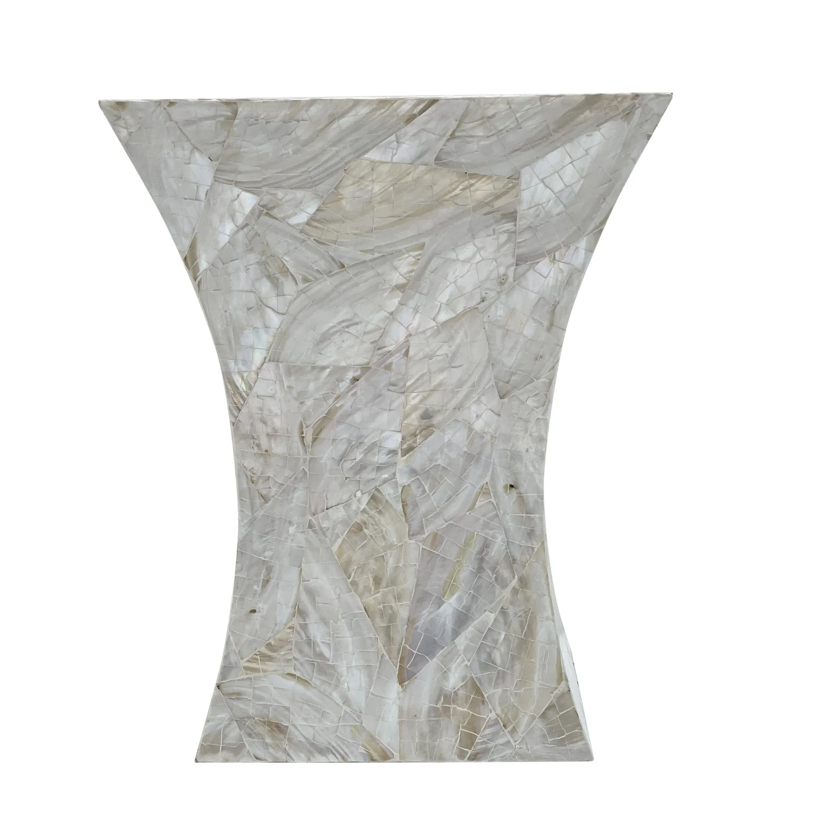 GLEESON MOTHER OF PEARL HAND MADE SIDE TABLE Create a statement piece in your living space with this beautiful, handcrafted mother of pearl side table from Gleeson! It will add a touch of elegance and sophistication to any room, making it a must-have for any home. The intricate details and stunning craftsmanship will surely impress and elevate your decor.