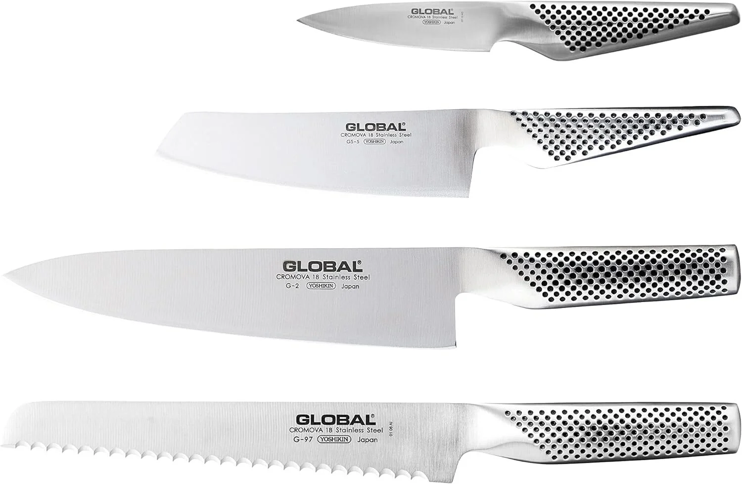 Experience the pinnacle of Japanese craftsmanship with the Global Hashira 5-Piece Japanese Knife Block Set, expertly handcrafted in Japan. This set combines the precision of modern technology with traditional techniques to deliver a superior collection of kitchen knives that are essential for any culinary enthusiast. Crafted from premium CROMOVA 18 stainless steel, each blade in this set retains razor-sharp edges that resist rust, stains, and corrosion, ensuring long-lasting performance.