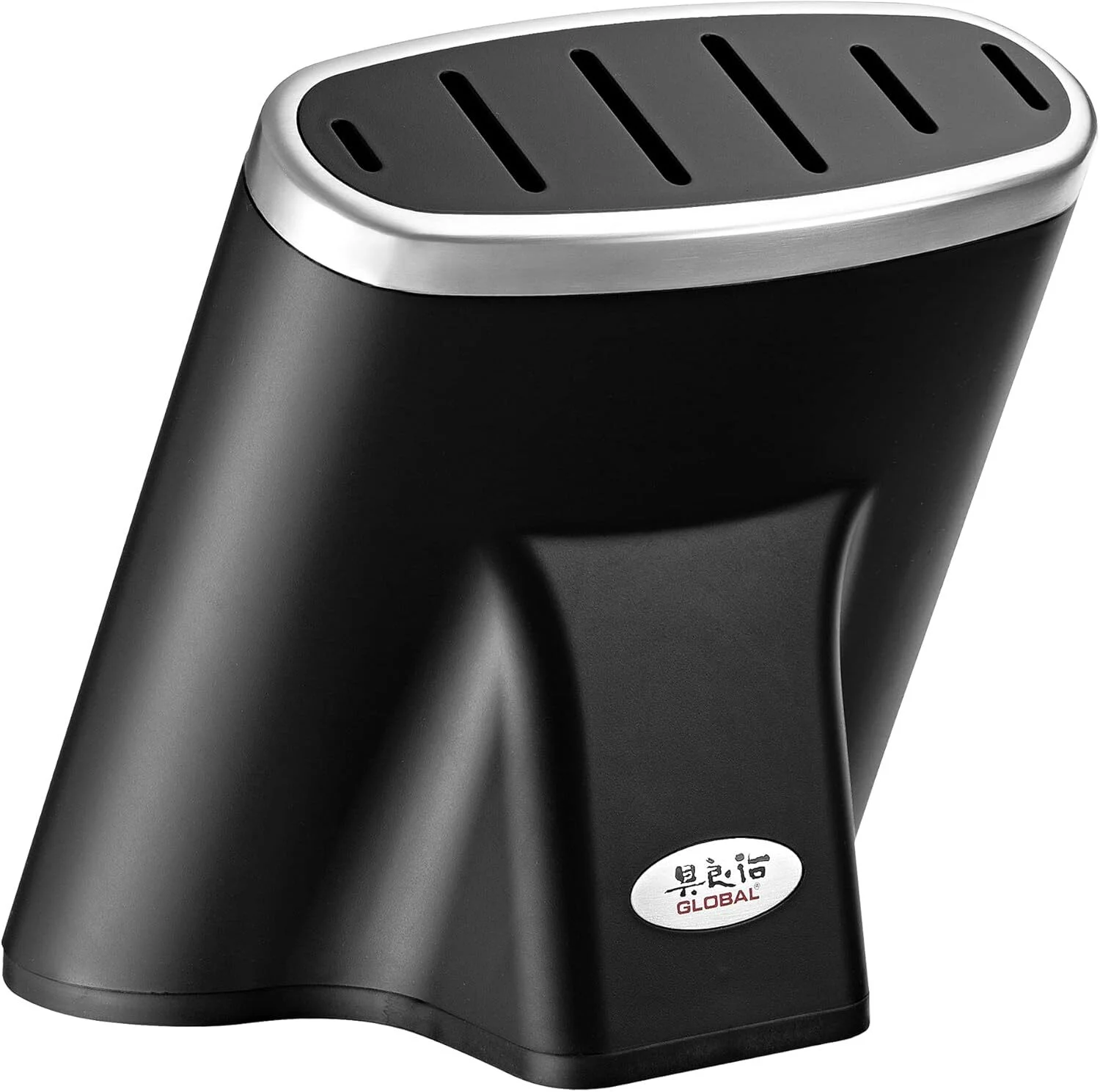 Each knife in this set is a testament to the superior craftsmanship and innovative design that Global is renowned for. Whether you’re slicing, dicing, paring, or even preparing delicate sashimi, this versatile collection has you covered. The ergonomically designed, dimpled handles provide a secure and comfortable grip, allowing for precise control and balance with every cut. The sleek black knife block, accented with silver edges and featuring the iconic Global badge, not only provides stylish storage but also ensures your knives are always within easy reach.