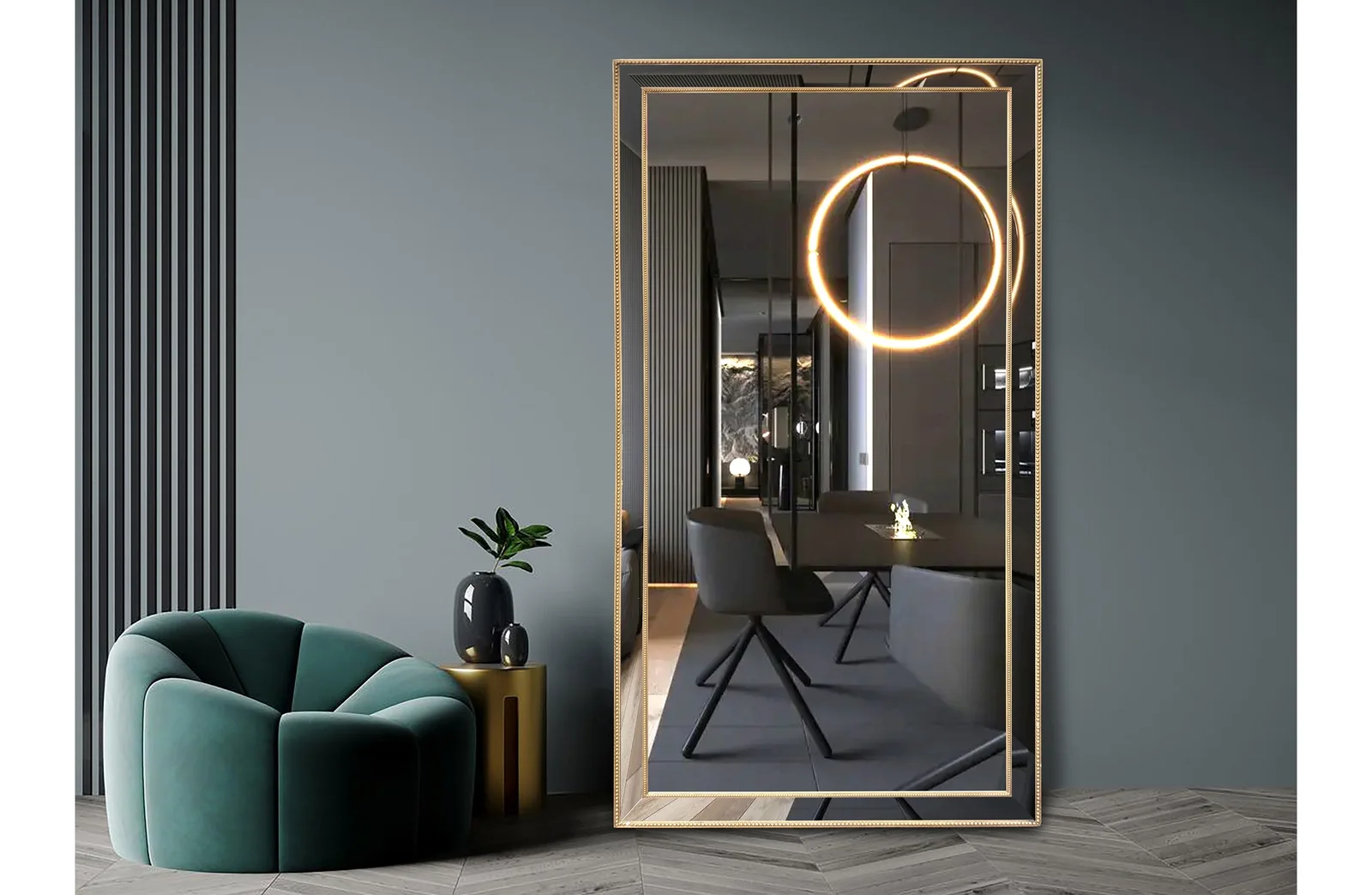 If you're looking for a mirror that adds a touch of glamour and elegance to your home, the Gold Beaded Framed Mirror - X Large 190cm x 100cm is an excellent choice. Its beaded frame design and high-quality materials make it a statement piece that will enhance the look of any room while also serving its purpose as a mirror.
