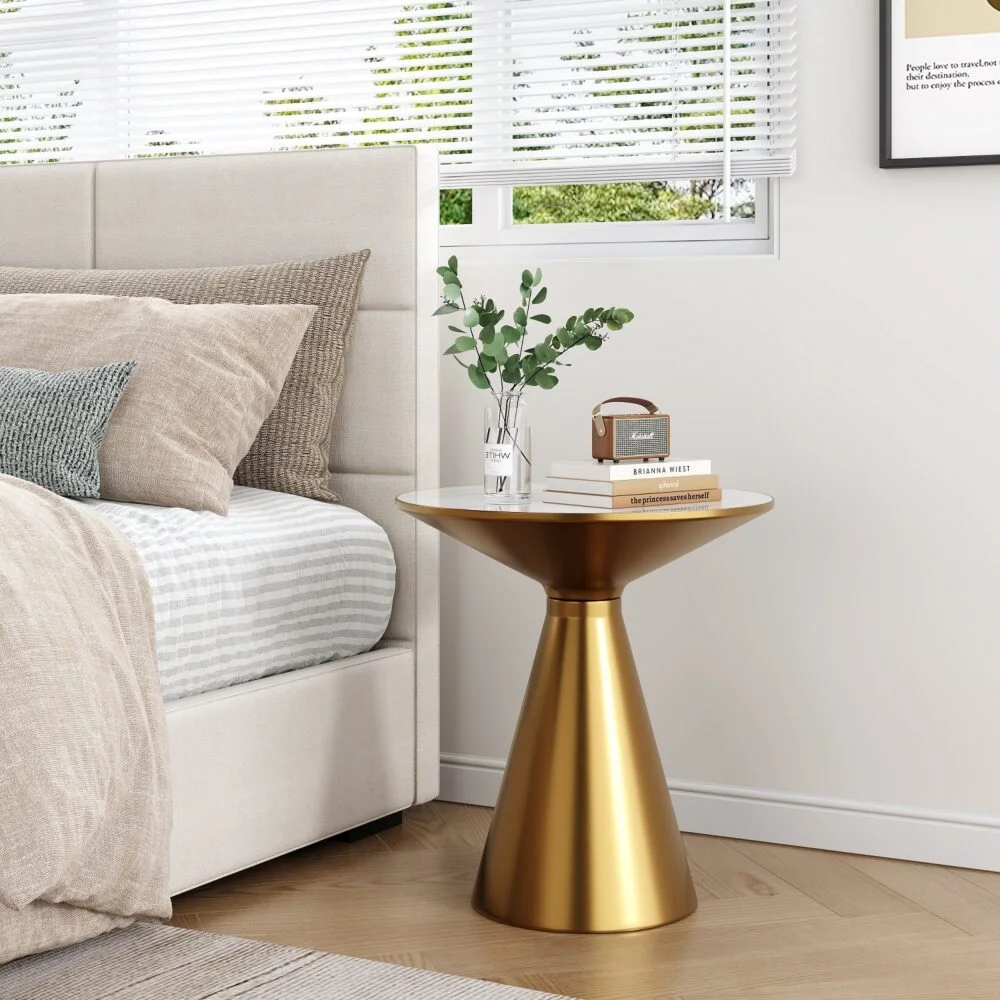 A brushed gold finish lends it a rich, an ideal location for placing your snacks and drinks, and a place to keep your lamp, frames, or other accessories. You can also use it as an entryway table to hold your keys.