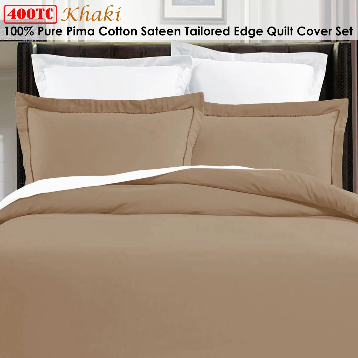 This elegant and minimalist 400TC 100% Pima Cotton Tailored Edge Quilt Cover Set Khaki by Grand Aterlier is a great addition to any room that needs a timeless update. It features embroidered tailored edge design in neutral colour tone that will easily match with existing bedroom style. It is made from quality and easy care 100% Cotton fabric that will add a touch of comfort to your bed for a relaxing night's sleep.