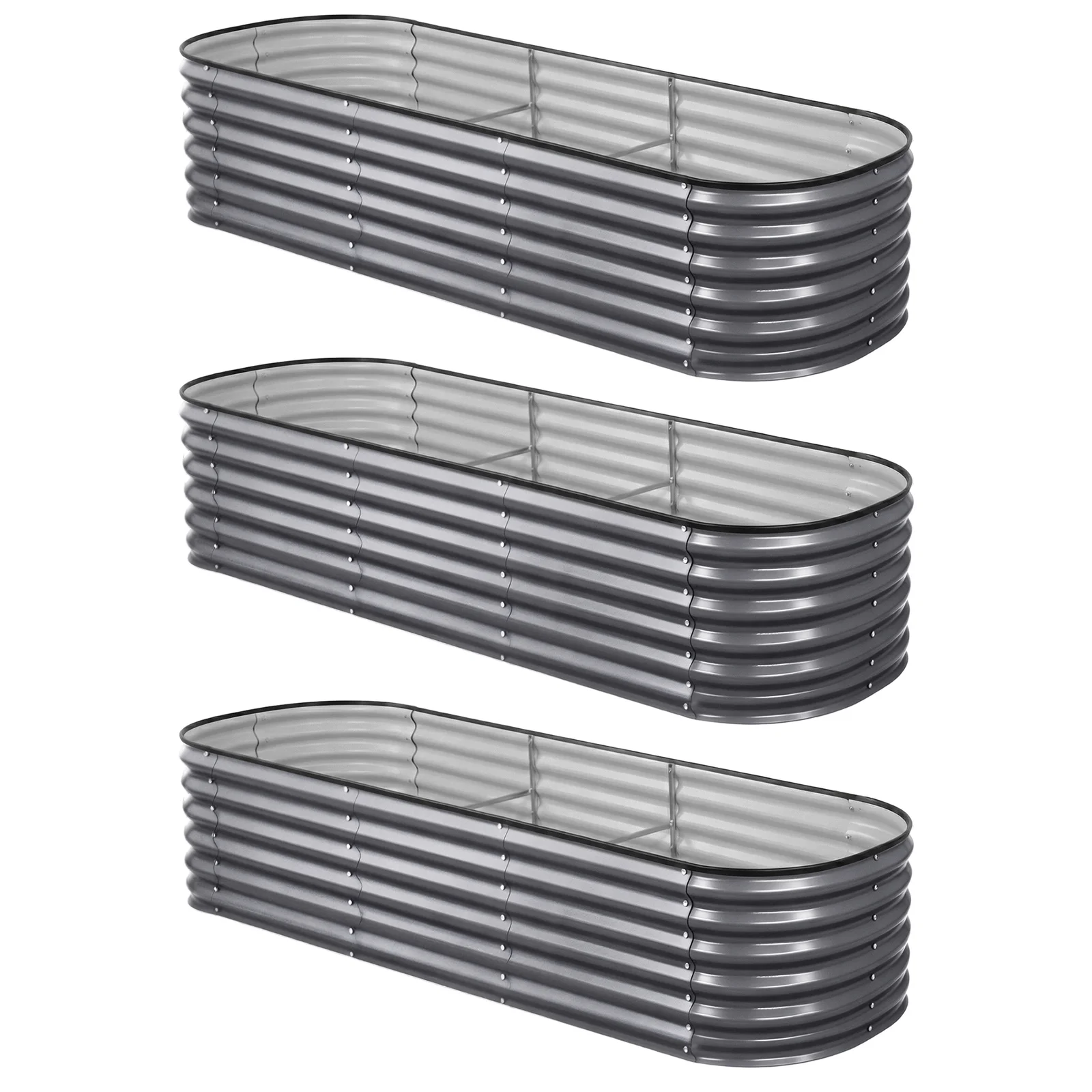 Green Fingers 3 Pcs Raised Garden Bed Kit Oval Galvanized Steel Planter Boxes 240x80x42cm, Heavy Duty Metal Elevated Garden Bed for Vegetables Flowers Herbs, with Safety Edging, Gloves & Pegs Included