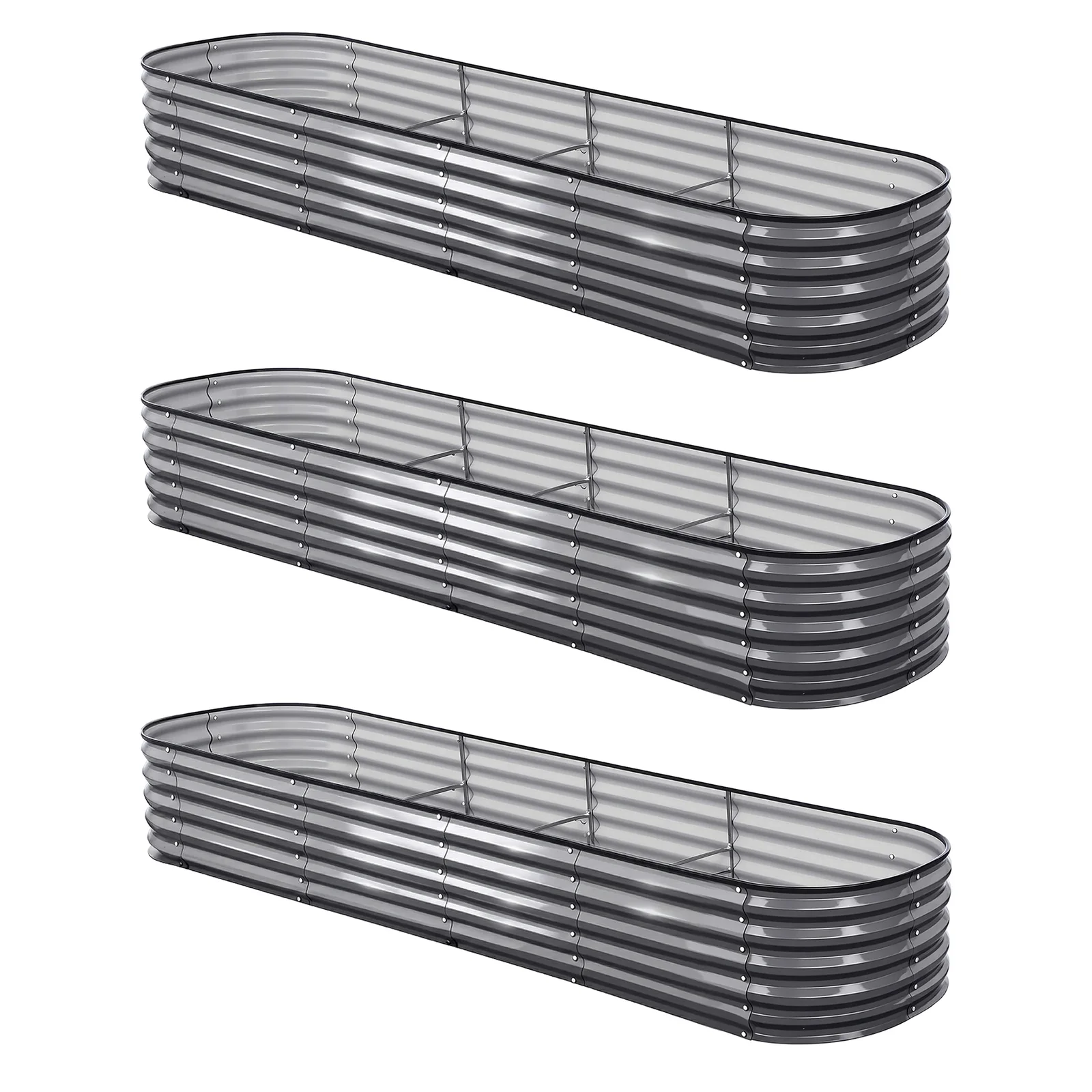 Green Fingers 3 Pcs Raised Garden Bed Kit Oval Galvanized Steel Planter Boxes 160x80x42cm, Heavy Duty Metal Elevated Garden Bed for Vegetables Flowers Herbs, with Safety Edging, Gloves & Pegs Included